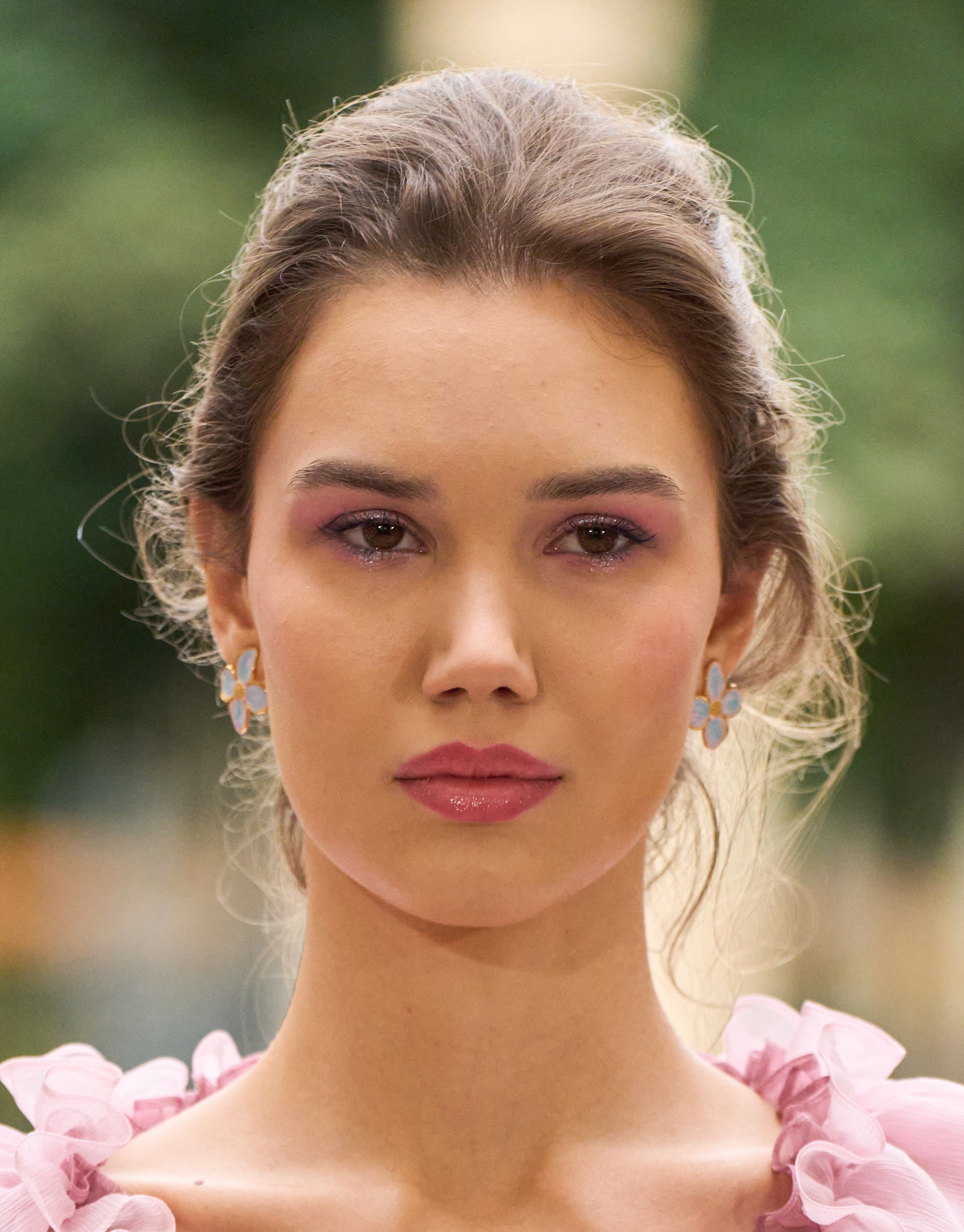 لإطلالة أكثر احتفالية، اعتمدت بعض الدور العالمية في عروضها الأخيرة، صيحة ظلال العيون الوردية الغليترية اللامعة، التي تأتي مرفقة برموش طويلة وكثيفة، مع بشرة مشرقة ومتوهجة بنغمات وردية، وشفاه وردية خافتة غلوسي، ما يبرز الشفاه بأسلوب أنثوي جذاب، هذه الإطلالة مثالية لمناسبات أكتوبر الوردي، حيث تجمع بين الجاذبية والأنوثة المبهجة.