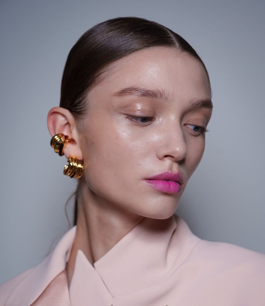 اعتمدت الكثير من العارضات في منصات الأزياء العالمية مزيج المكياج البسيط والأنيق الذي يجمع بين شفاه وردية مطفأة بلون مشبع، وبين عيون طبيعية جداً بلمسات كريمية شفافة، هذه الإطلالة تسلّط الضوء بشكل أساسي على الشفاه، لتكون محور المكياج، وتناسب الحفلات والمناسبات المسائية حيث ترغبين في إطلالة راقية بلا تكلف.