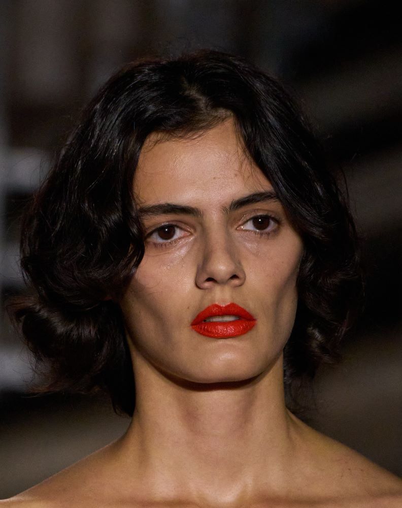 أعاد جان بول غوتييه Jean Paul Gautier صيحة أحمر الشفاه البرتقالي إلى الواجهة، بلون ساطع مفعم بالطاقة والحيوية. برزت الشفاه كعنصر أساسي في الإطلالة، بينما بقي المكياج الباقي بسيطاً للغاية: بشرة مخملية ناعمة، لمسات ماسكارا خفيفة، وحواجب مشذبة بعناية. هذه الصيحة تعكس روح المرأة الجريئة التي لا تخشى الألوان وتحب أن تترك أثراً لافتاً أينما ذهبت.