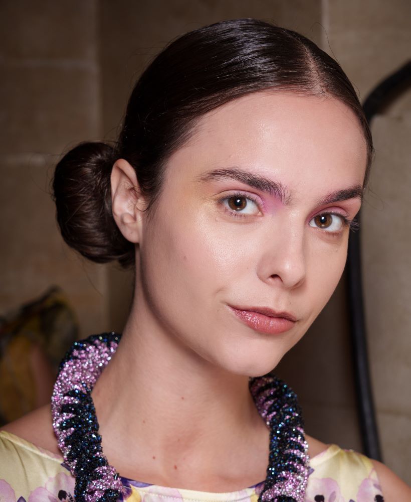 اعتمدت فيكتوريا بايكهام Victoria Beckham أسلوب المكياج المونوكروم الذي يوحّد ألوان الوجه ضمن تدرج واحد. اختارت الوردي الفاتح بنسق مشرق على الجفون والخدين والشفاه، ما منح العارضات إشراقة طبيعية ومتوهجة. هذا الستايل يناسب المرأة التي تبحث عن الجمال الهادئ والبشرة المتورّدة من دون أي مبالغة، ويعكس أسلوب "المكياج بلا مكياج" بأسلوب راقٍ ومفعم بالأنوثة.