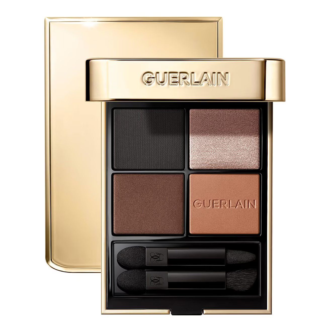 تتميز لوحة Ombres G من غيرلان Guerlain بتركيبة استثنائية غنية بالأصباغ المكثفة، ما يمنح الألوان عمقاً يدوم طويلاً على الجفون. تحتوي كل لوحة على أربع درجات بتشطيبات مختلفة؛ لمسة ساتان مكثفة، لمسة مطفية عميقة، لمسة معدنية براقة، ولمسة لؤلؤية مضيئة.