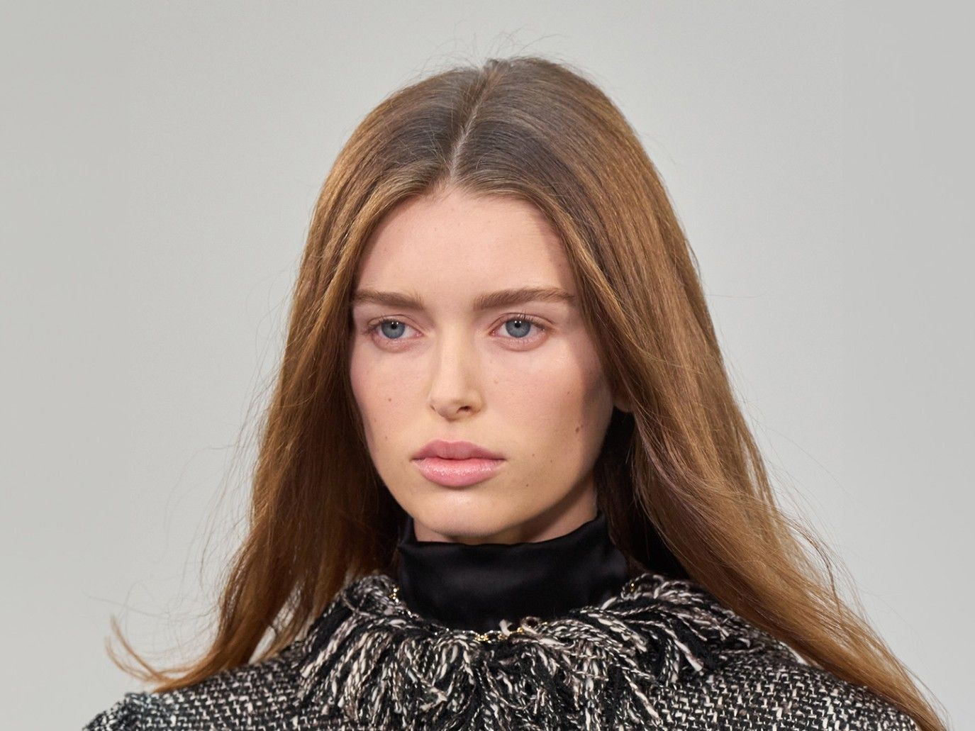 يعدّ الشعر البني الداكن خياراً أنيقاً ومثالياً لإبراز عمق العيون الزرقاء وجعلها أكثر سحراً وغموضاً؛ فهو يمنح توازناً رائعاً بين الدفء والفخامة، ويبرز إشراقة البشرة مهما كان لونها، هذا التدرج يوحي بالقوة والأنوثة الراقية في الوقت نفسه، خاصة عند تنسيقه مع مكياج بألوان ترابية أو نحاسية.