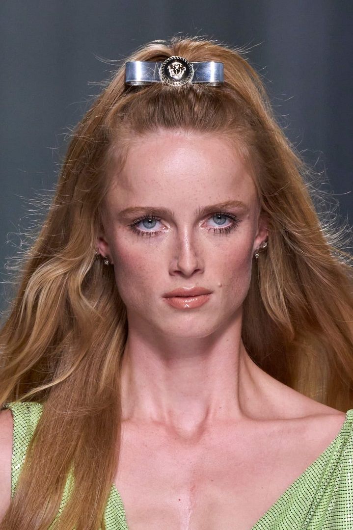 إذا كنتِ جريئة وتحبين الإطلالات اللافتة، فالشعر النحاسي سيكون خيارك الأمثل، هذا اللون يُبرز تدرجات الأزرق في العيون بطريقة مذهلة، ويخلق تبايناً فنياً رائعاً؛ يمنح الوجه دفئاً ولمعاناً، يتناغم النحاسي مع المكياج الترابي أو الخوخي، ويضفي لمسة من الحيوية والشخصية القوية على ملامحك.