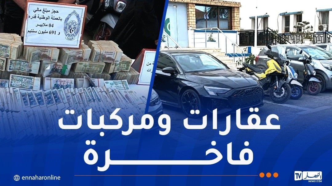 وأسفرت العملية عن حجز مبلغ مالي من العائدات الإجرامية يقارب 5 ملايير سنتيم. حجز كمية من المجوهرات من المعدن الأصفر. 4 مركبات فاخرة و3 دراجات نارية . ساعات فاخرة و 9 حاصلة للدراهم قيمة الواحدة منها 20 مليون سنتيم.