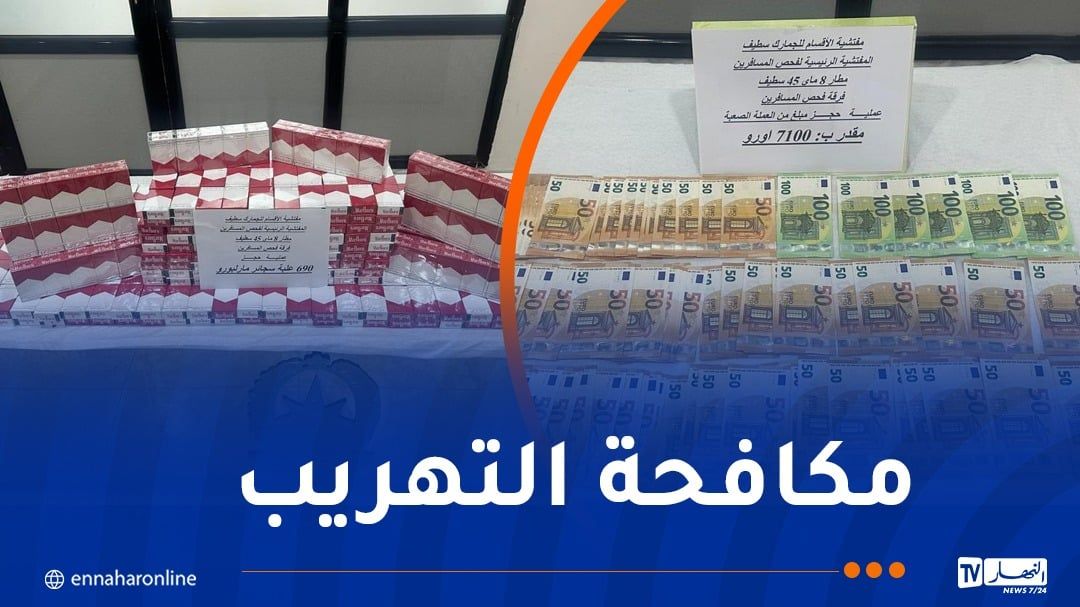 تمكن أعوان المفتشية الرئيسية لفحص المسافرين بالمطار الدولي 8 ماي 1945، التابعة لمفتشية أقسام الجمارك بسطيف، في عمليتين متفرقتين، من حجز 690 علبة سجائر من نوع مارلبورو، كانت مخبأة بأمتعة وحقائب مسافرين اثنين متوجهين نحو مدينة ليون الفرنسية.