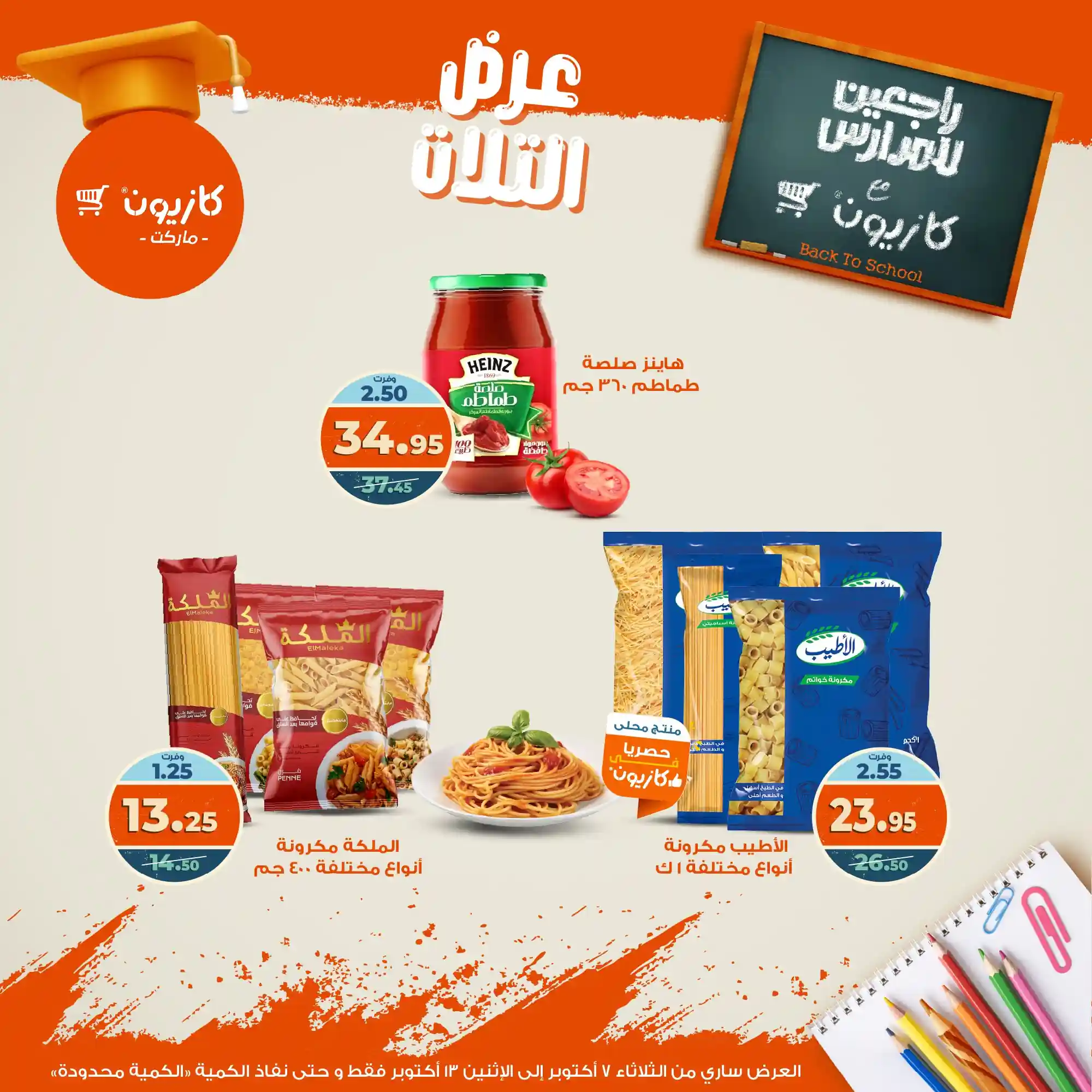 العروض الجديدة من كازيون تسرى من 7 اكتوبر حتى 13 اكتوبر 2025 راجعين للمدارس فى جميع فروع كازيون