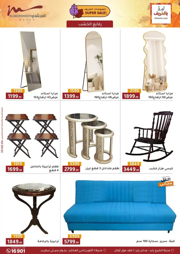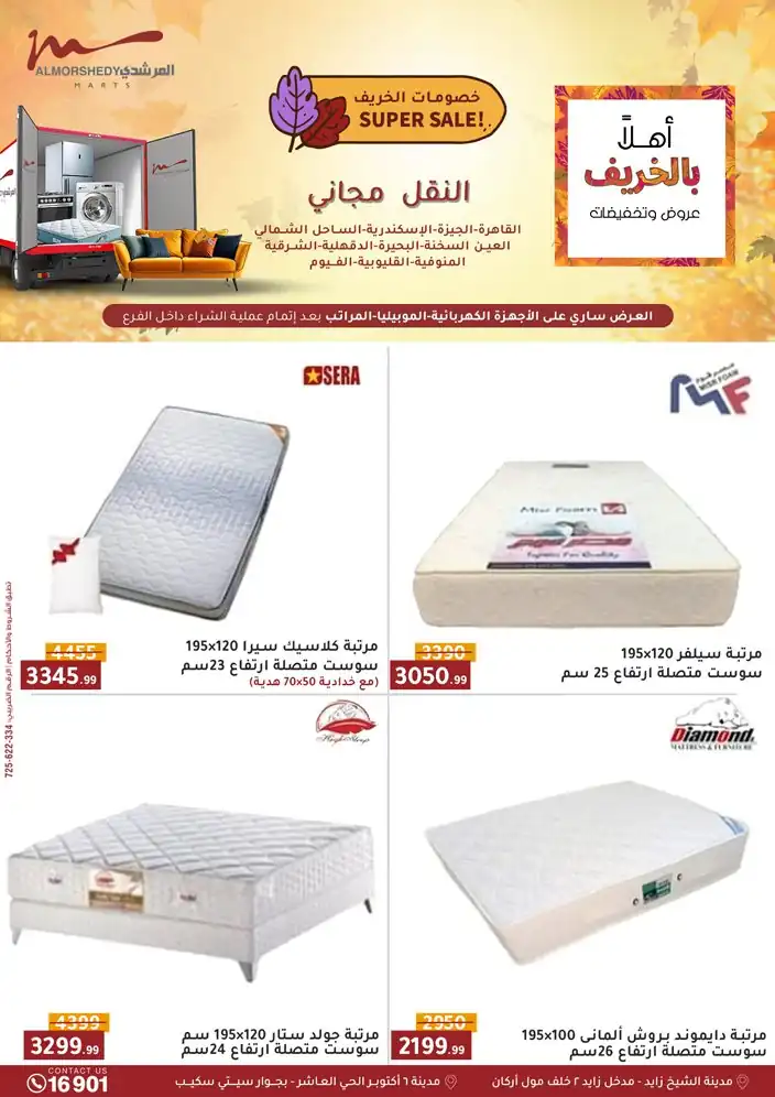 عروض جديدة من أسواق المرشدي مع اكبر مهرجان للتخفيضات في مصر خصومات حتى 70% وقسط براحتك بدون فوائد بأسعار العروض المخفضة على 12 شهر لحاملي بطاقة ائتمان CIB أو قسط براحتك مع VALU بدون مقدم حتى 60 شهر أو بدون مقدم وبدون فوائد مع نظام هاتريك وكمان النقل مجاني للقاهرة والجيزة والقليوبية على قسم الأجهزة الكهربائية والموبيليا والمراتب ( تطبق شروط المكان ) خصومات على جميع الأقسام أدوات منزلية – اجهزة كهربائية – مفروشات – موبيليا – نجف – سجاد – مراتب – ملابس رجالي وحريمي وأطفالي ومستلزمات ولعب الأطفال وجاليري وأقسام تانية كتير استمتع بالتسوق في أسواق المرشدي مع أكتر من 12 قسم و أكثر من 10,000 منتج يعني كل اللي بتحلم بيه عند المرشدي هتلاقيه