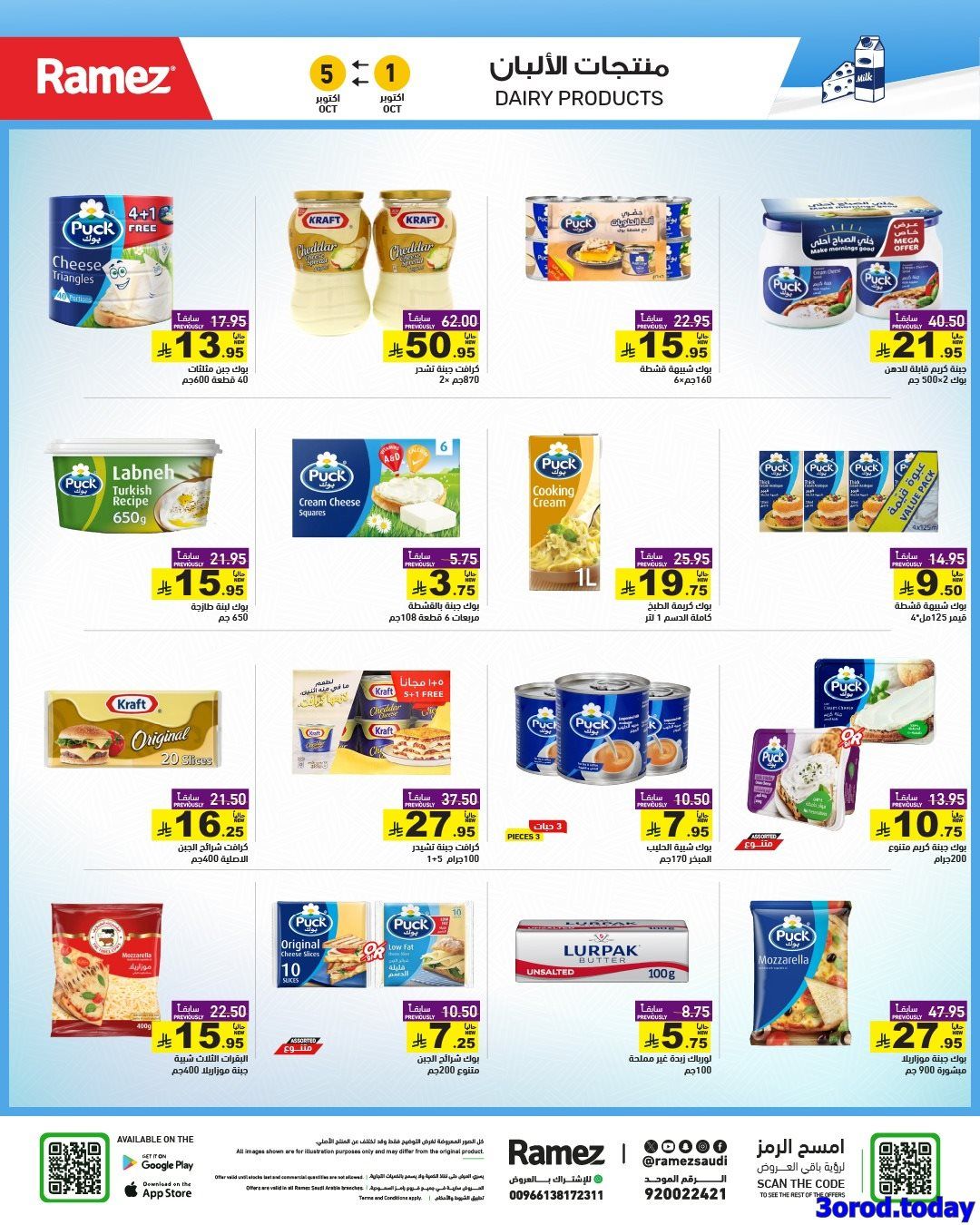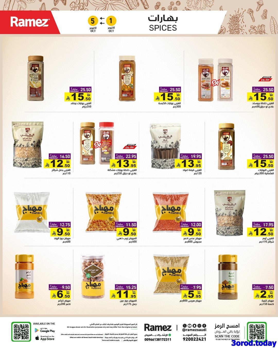 عروض أسواق رامز السعودية الاربعاء 1-10-2025 تقدم تشكيلة واسعة من المنتجات تشمل الزيوت والأرز والمناديل والدجاج المجمد ومنتجات الألبان والخبز والمشروبات بالإضافة إلى عروض خاصة على المنتجات المعلبة و تبرز بتقديم منتجات البهارات والبقوليات المتنوعة والمكسرات والأجبان الطازجة إلى جانب منتجات التنظيف والصلصات