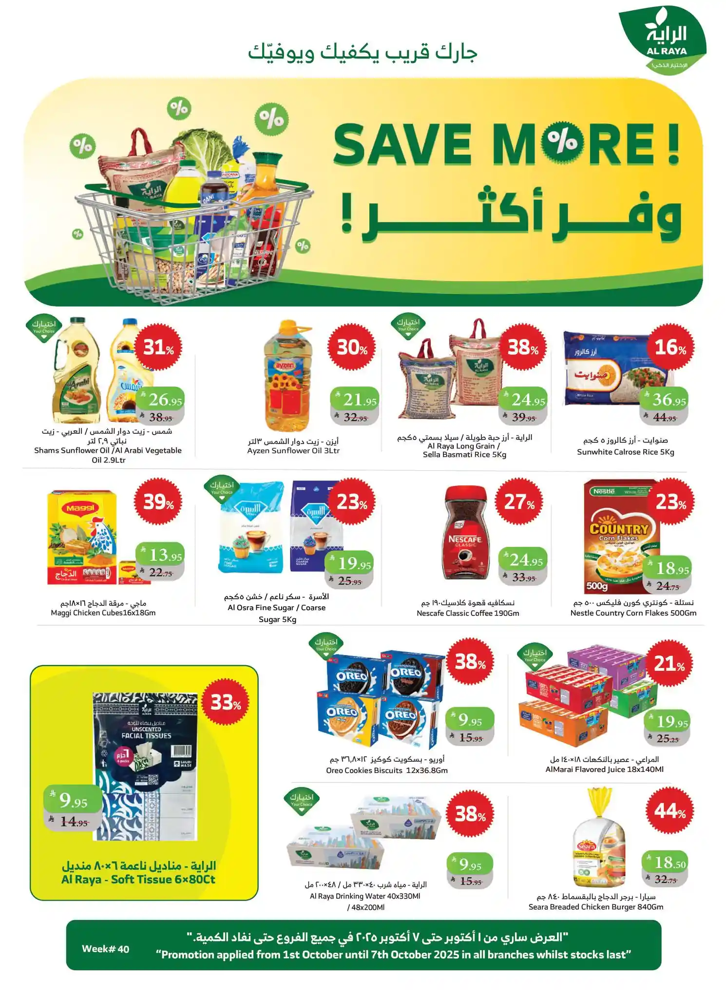 عروض الراية السعودية اليوم سارية فقط من 1 اكتوبر حتى 7 اكتوبر 2025 فى جميع فروع اسواق الراية جدة و اسواق الراية الجنوبية.