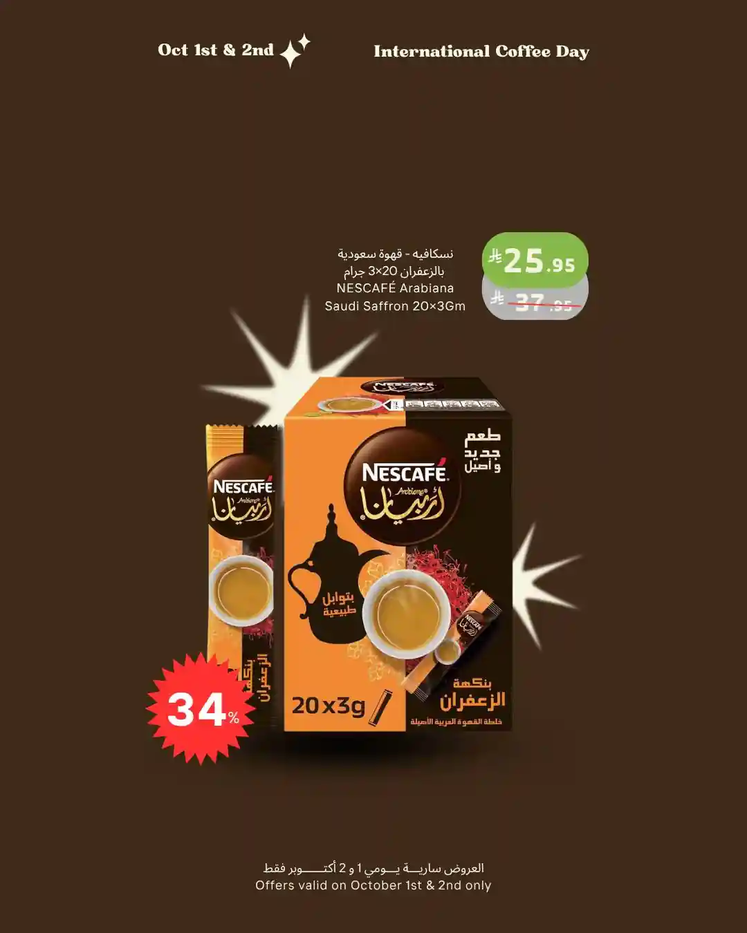 عروض الراية السعودية اليوم سارية فقط من 1 و 2 أكتوبر 2025 يوم القهوة العالمى فى جميع فروع اسواق الراية جدة و اسواق الراية الجنوبية.