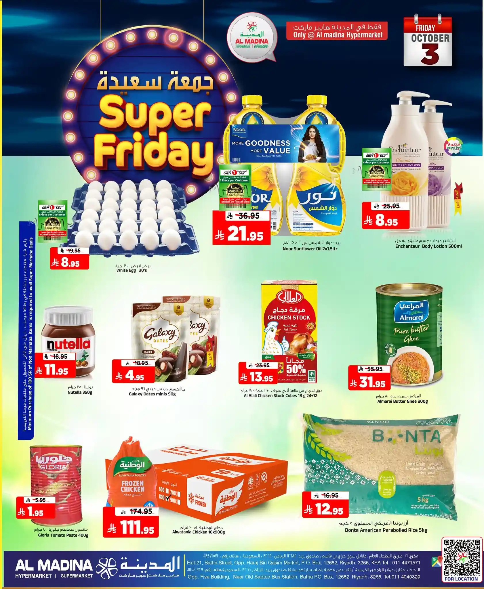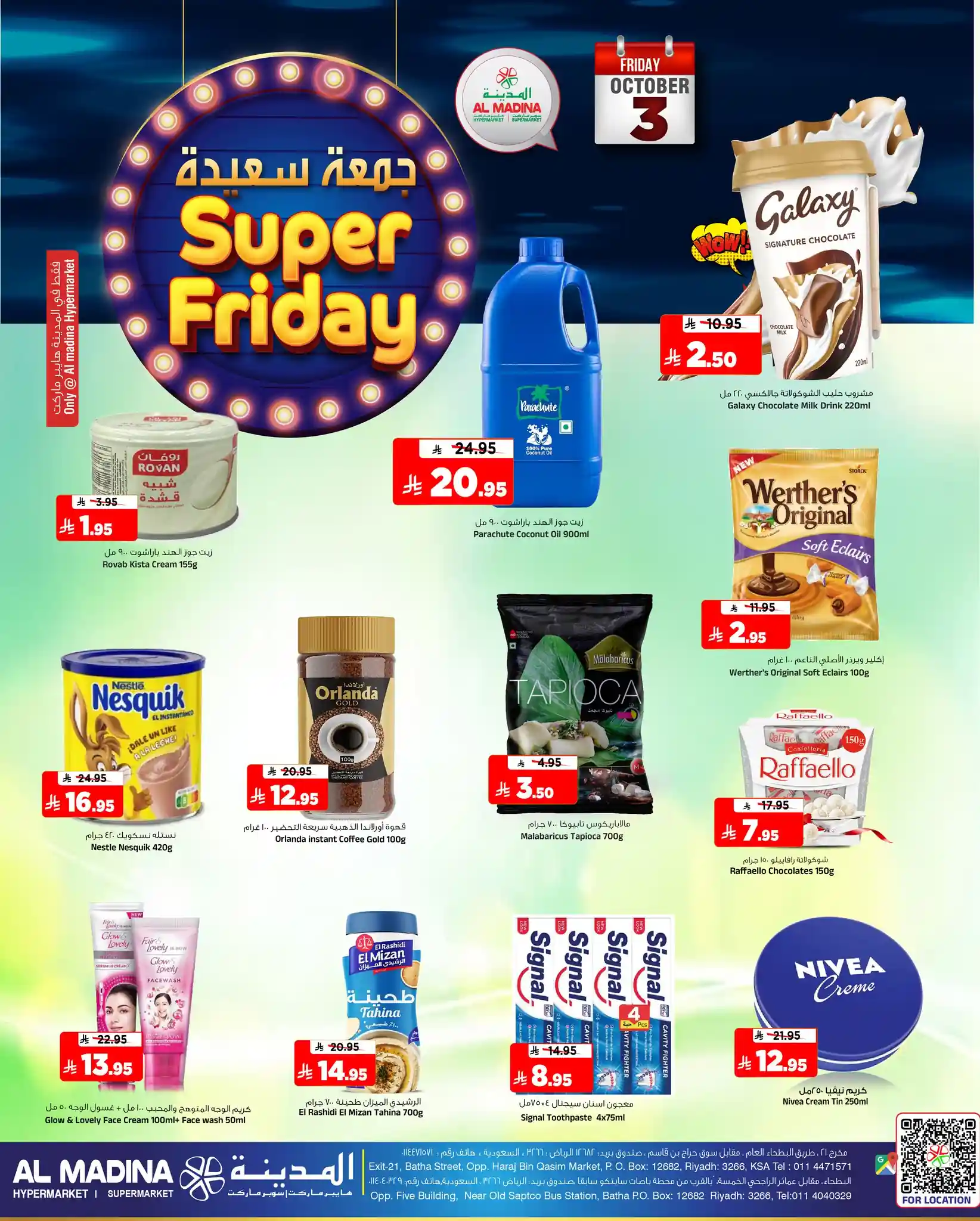 عروض نت تقدم لكم احدث عروض المدينة هايبر ماركت الرياض اليوم الجديدة فى صفحة واحدة – العروض الاسبوعية من المدينة هايبر ماركت – و ذلك من 3 اكتوبر حتى 4 اكتوبر 2025 و حتى نفاذ الكمية من المدينة هايبر ماركت بجميع الفروع.