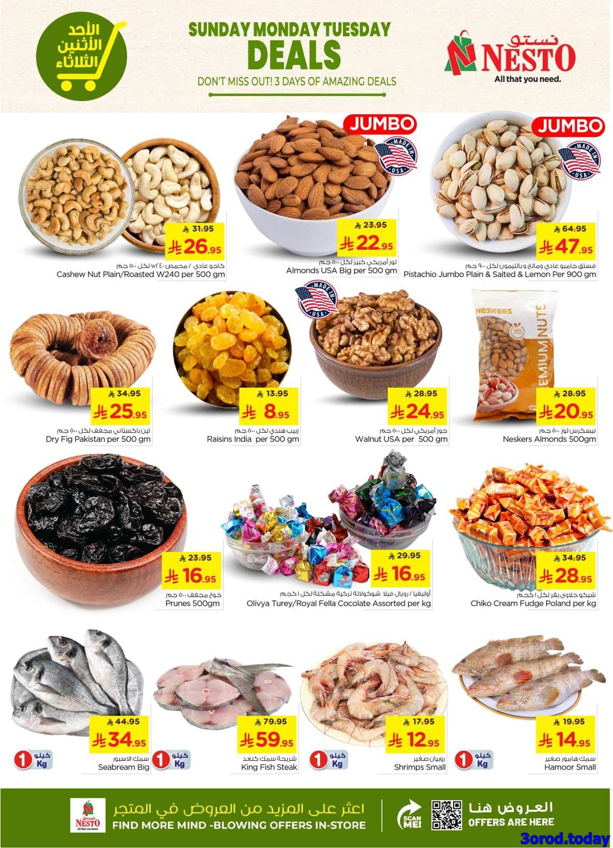 عروض نستو القصيم الأحد 5-10-2025 تقدم تشكيلة واسعة من المنتجات الطازجة والمواد الغذائية والمنزلية حيث تشمل العروض أصناف الفواكه مثل التفاح والجوافة والرمان والعنب إضافة إلى الخضروات الطازجة وتشمل منتجات التنظيف والشامبو وحفاضات الأطفال وزيت دوار الشمس وعدة أصناف من الشاي والدواجن المجمدة