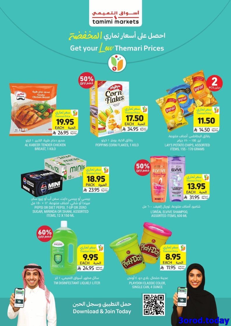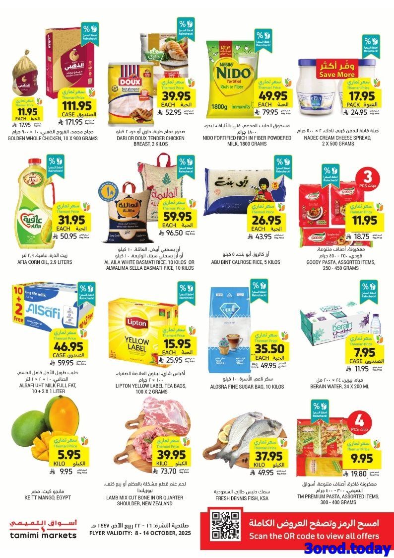عروض التميمي الأسبوعية الأربعاء 8-10-2025 تبدأ بالعروض على الأجهزة المنزلية الصغيرة مثل أجهزة القهوة وأجهزة التوستر وأطقم المطبخ الأنيقة ثم تقدم تخفيضات على اللحوم والدواجن والأسماك بجانب عروض على المعلبات والحبوب والمنتجات المجمدة كما تشمل العروض أجهزة المايكروويف والمكانس الكهربائية بأسعار مناسبة