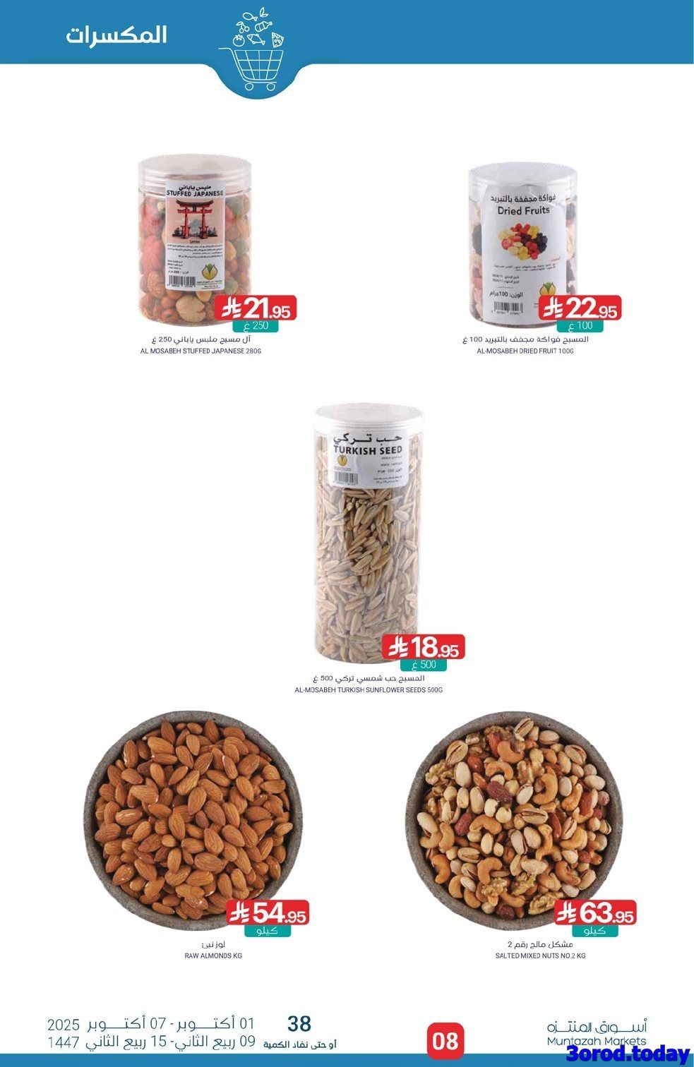 عروض أسواق المنتزه الأسبوعية الأربعاء 8/10/2025 تقدم خصومات على اللحوم الطازجة والدواجن والأسماك المجمدة بجانب الأعشاب والتوابل الشرقية ومنتجات الطبخ كما تشمل عروضا على منتجات التنظيف والعناية بالمطبخ مع تخفيضات على أدوات الضيافة والأجهزة المنزلية الصغيرة وتشكيلة من أدوات المائدة