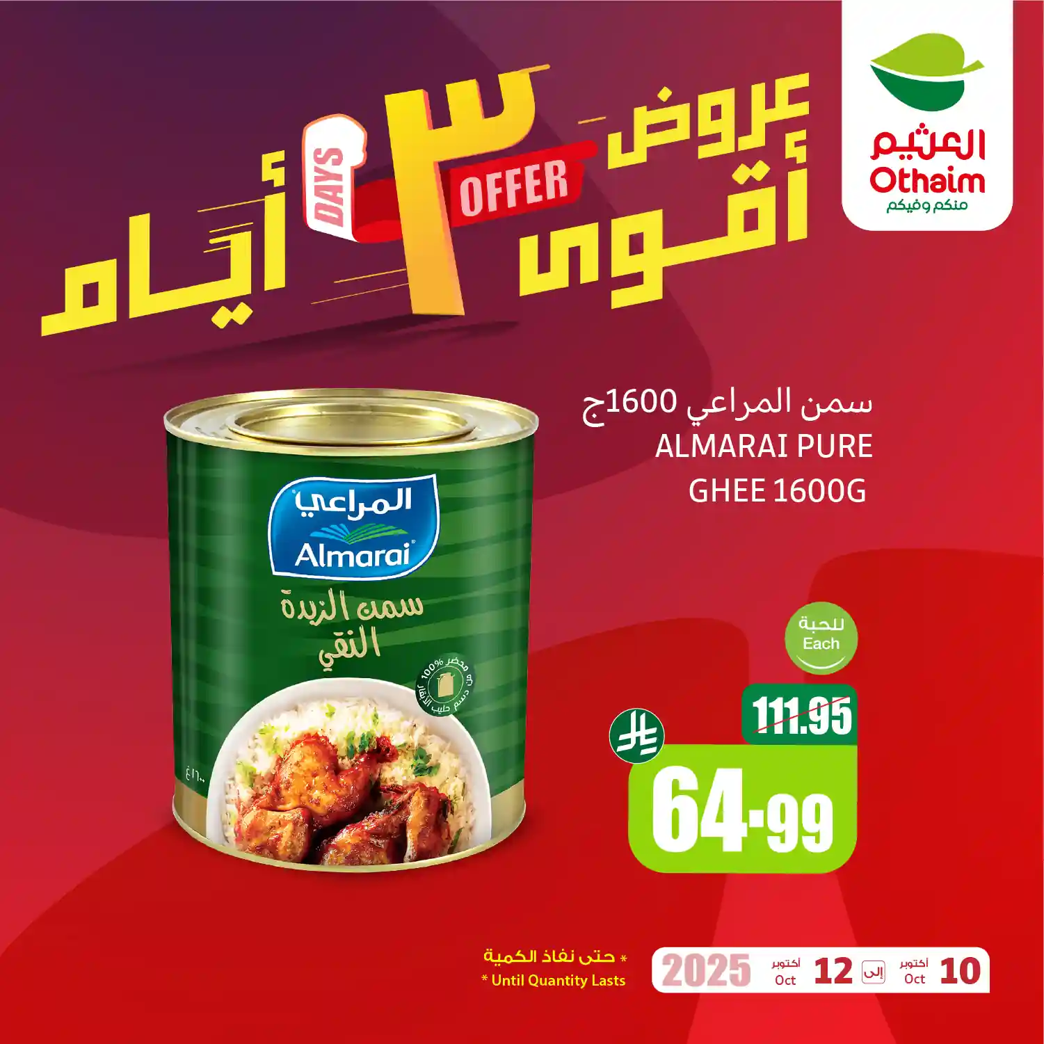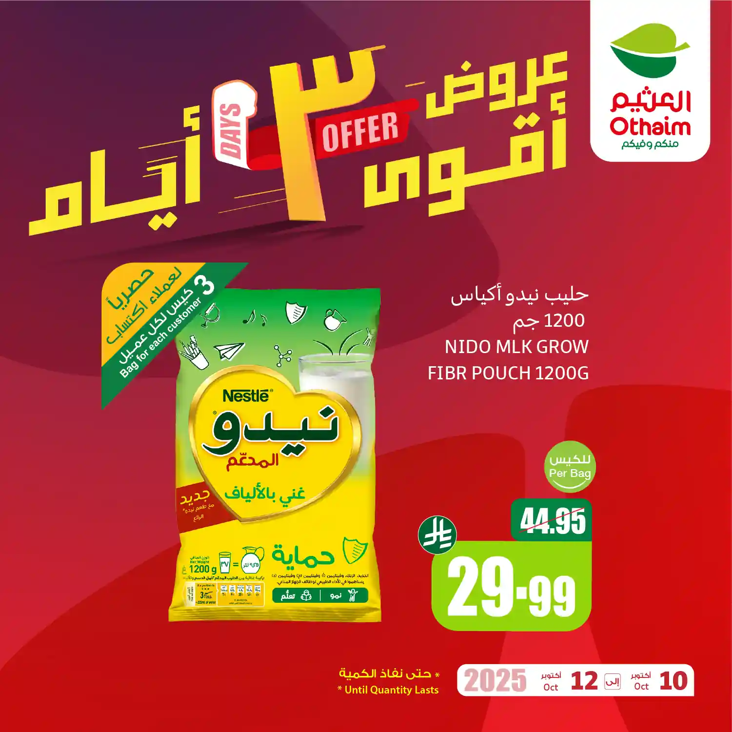 عروض نت تقدم لكم احدث عروض العثيم السعودية اليوم الجديدة فى صفحة واحدة – العروض الاسبوعية من اسواق العثيم هايبر ماركت – و ذلك من 10 اكتوبر حتى 12 اكتوبر 2025 ثلاثة أيام او حتى نفاذ الكمية من اسواق عبد الله العثيم السعودية بجميع الفروع.