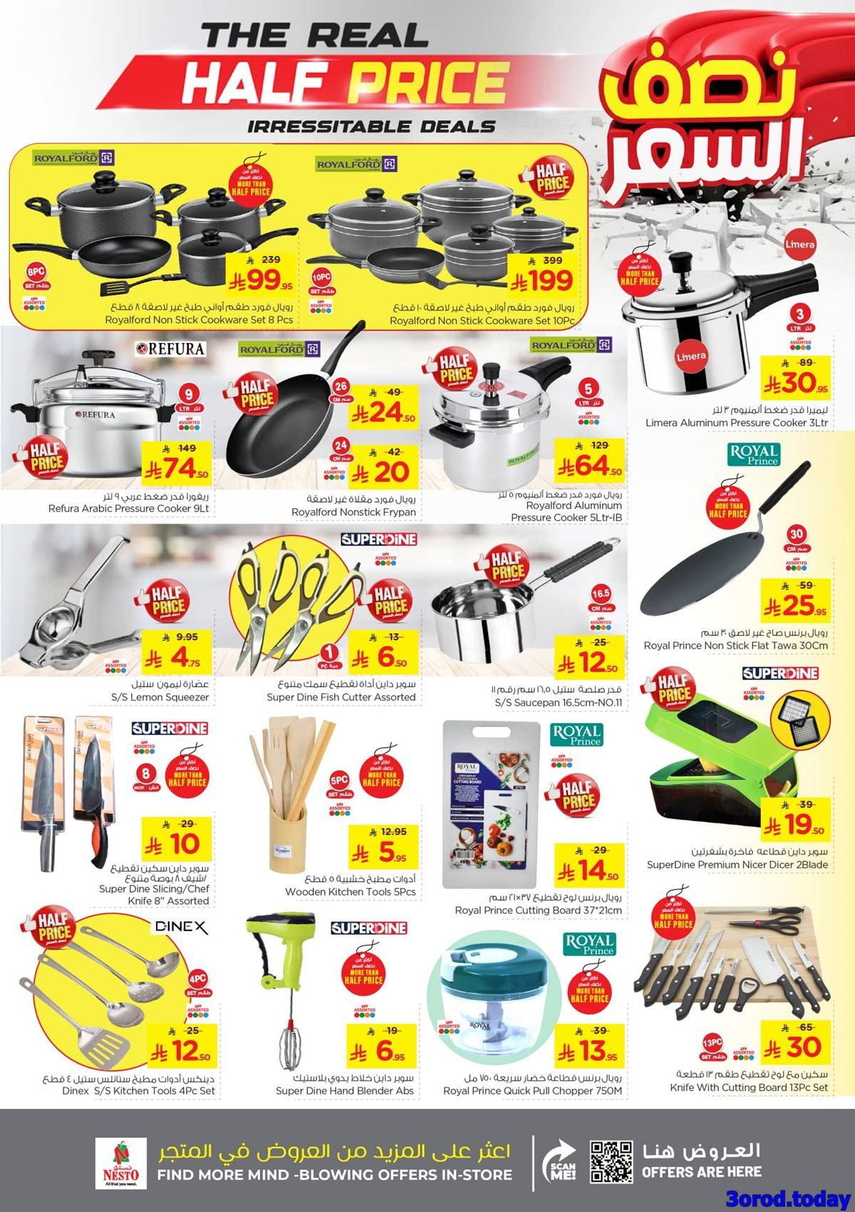 نستو الأحساء الأسبوعية الأربعاء 15 أكتوبر 2025 بتوفر الاسبوع ده متنوع من الأجهزة الكهربائية الصغيرة مثل أجهزة المايكروويف وأجهزة تحضير القهوة وأدوات الخبز وأفران الكعك وأجهزة التوستر و العروض فيها كمان منتجات غذائية كتير منها العصائر والمعلبات والبقوليات والبهارات إضافة إلى الأرز والزيوت النباتية والمنتجات المجمدة