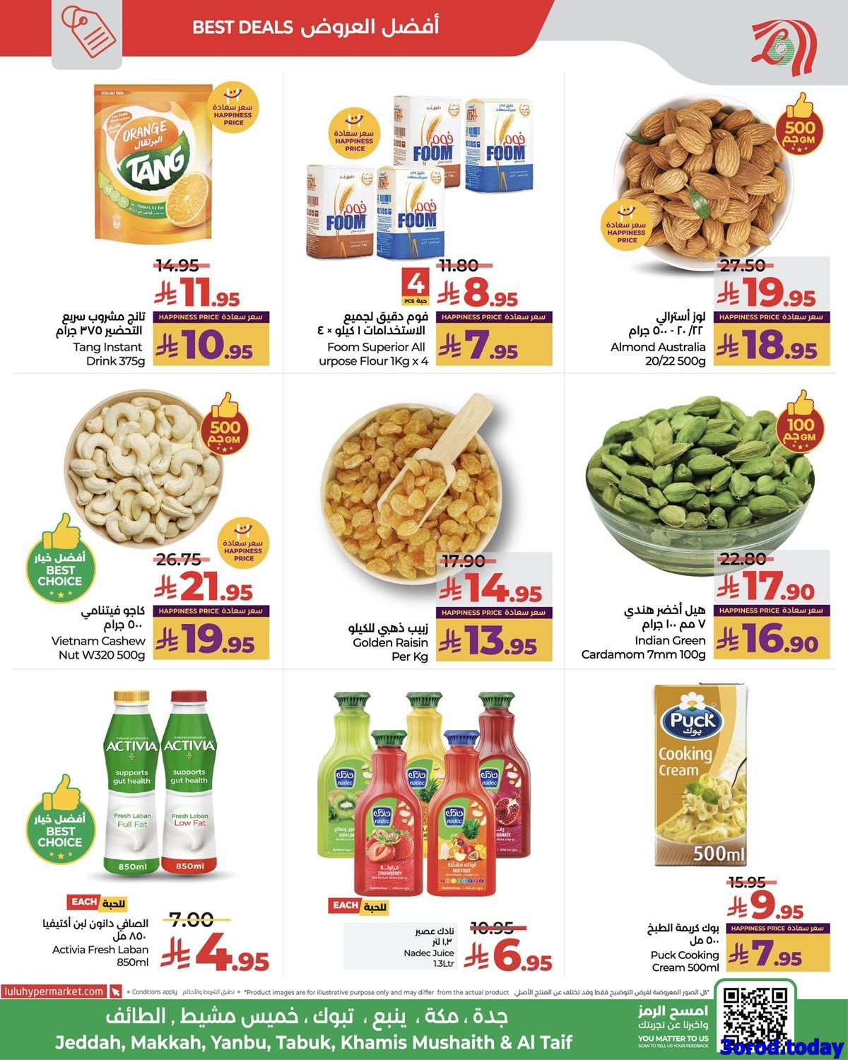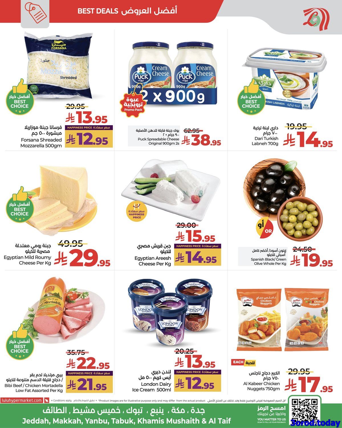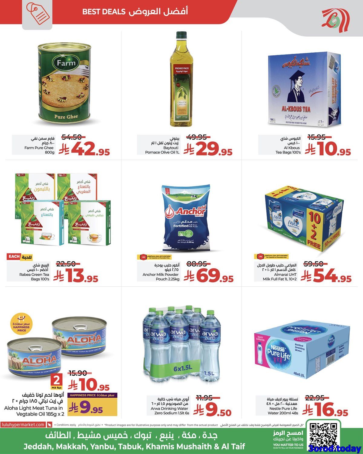 عروض لولو جدة الأحد 27 ربيع الثاني 1447هـ تشمل باقة متنوعة من المنتجات الغذائية و بتحتوي علي الفاكهة الطازجة بالإضافة إلى أصناف عديدة من المواد الغذائية والمشروبات كالشاي والقهوة والحليب المجفف وزيت الزيتون وزيت عباد الشمس والدقيق والطحين الفاخر والأرز والمعلبات مثل سمك التونة والخبز الأبيض .