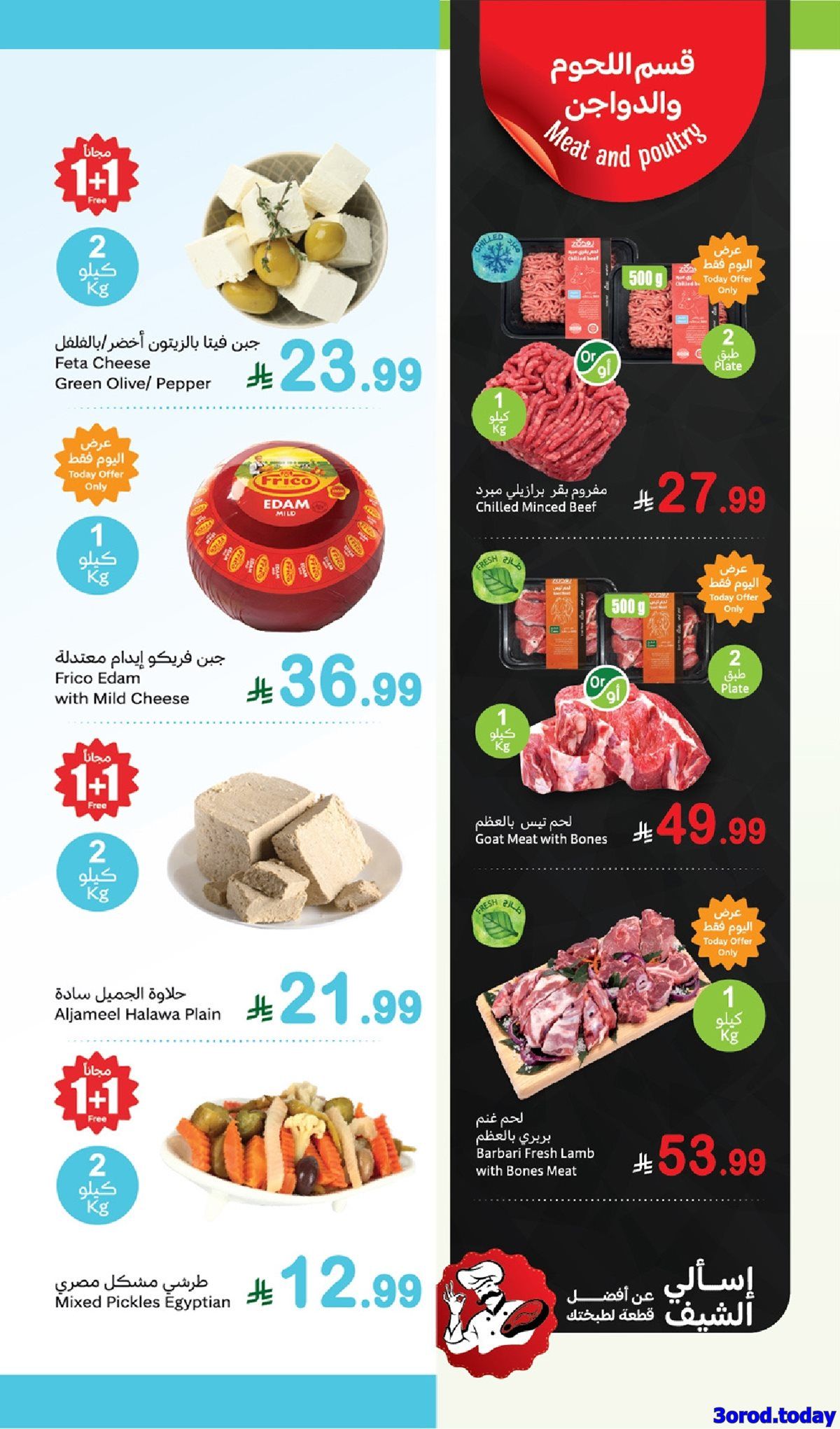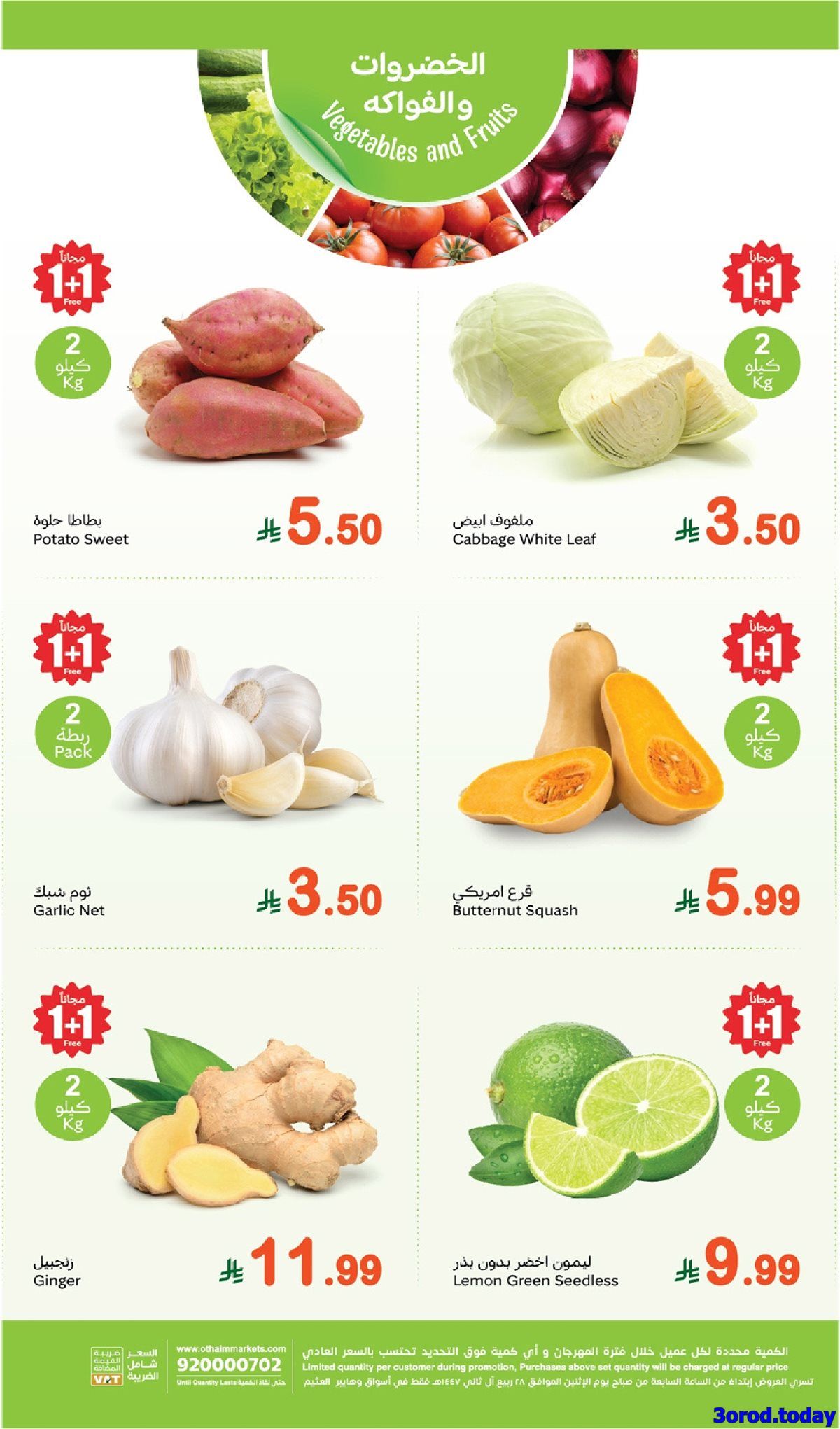 عروض العثيم الاثنين 28 ربيع الثاني 1447هـ تقدم الخضروات والفواكه و تشكيلة من الجبن بأنواعه مثل جبن فيتا بالزيتون الأخضر أو الفلفل وبتوفر كمان اللحوم الطازجة والدواجن مثل اللحم المفروم البقري البارد ولحم الماعز بالعظم ولحم الغنم البربري وبتقدم الكثير من اجهزة المطبخ و باقل الاسعار في عروض العثيم الطازج فقط تابعونا ليصلكم كل جديد .
