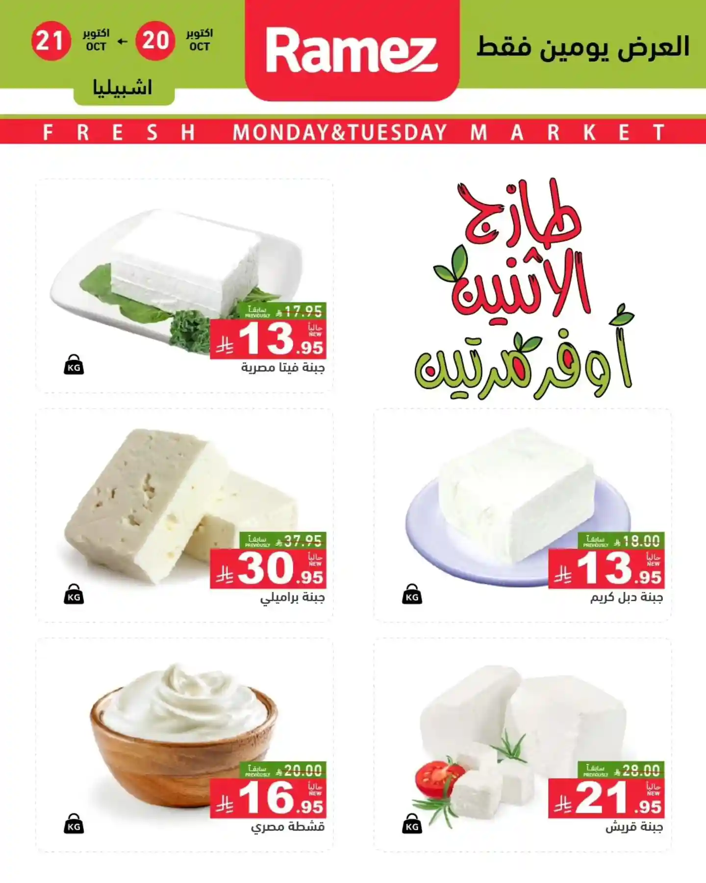 عروض نت تقدم لكم احدث عروض رامز السعودية اليوم الجديدة فى صفحة واحدة – عروض رامز السعودية 2025 – و ذلك من 20 و 21 اكتوبر 2025 طازج الاثنين او حتى نفاذ الكمية من رامز السعودية بجميع الفروع.
