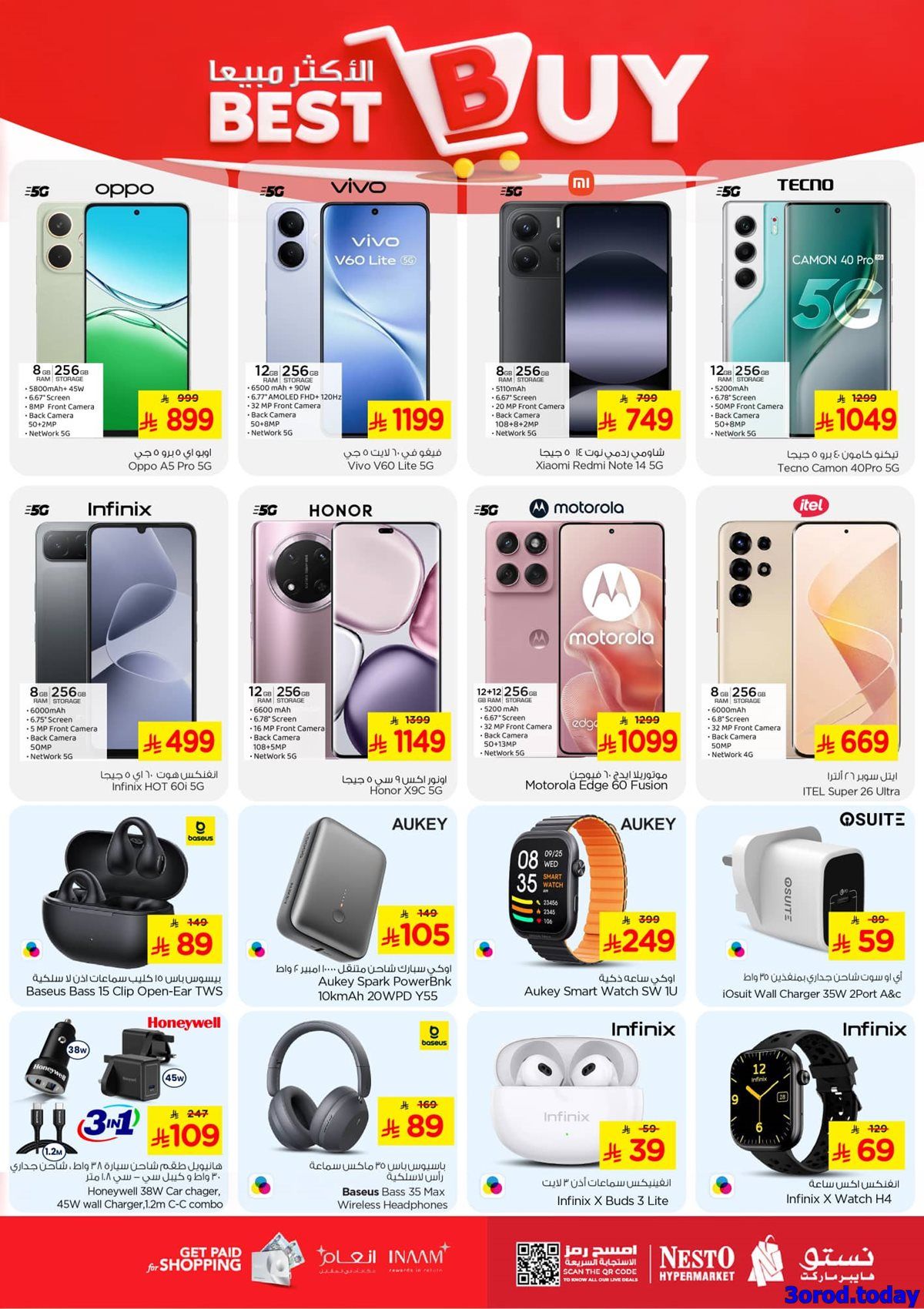 عروض نستو القصيم الأسبوعية الأربعاء 30 ربيع الآخر 1447هـ تحتوي على خصومات على مجموعة من المنتجات الغذائية المتنوعة مثل المخبوزات والمعجنات والعصائر الطازجة والبهارات المحلية ومكونات الأرز كما تشمل عروضا على أجهزة القهوة وأفران البيتزا وأجهزة التحضير وأدوات المائدة الزجاجية وغيرها من الالكترونيات