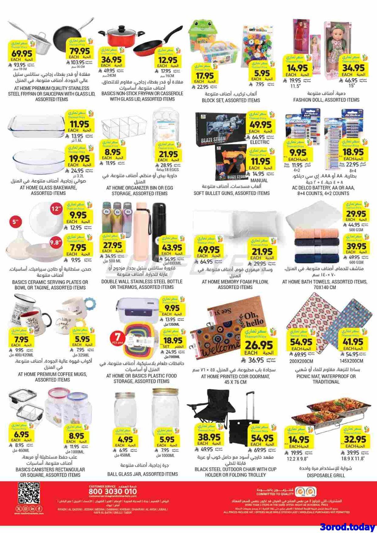 عروض التميمي الأسبوعية الأربعاء 30 ربيع الآخر 1447هـ تحتوي على خصومات كبيرة على الأجهزة الكهربائية المنزلية مثل أفران الطبخ الحديثة وأجهزة تحضير القهوة والخلاطات المتعددة وأواني الطهي و بتشمل كمان المنتجات الغذائية المختارة من المخبوزات والفواكه الطازجة والعصائر الطبيعية والجبن والعسل و اللحوم باقل الاسعار