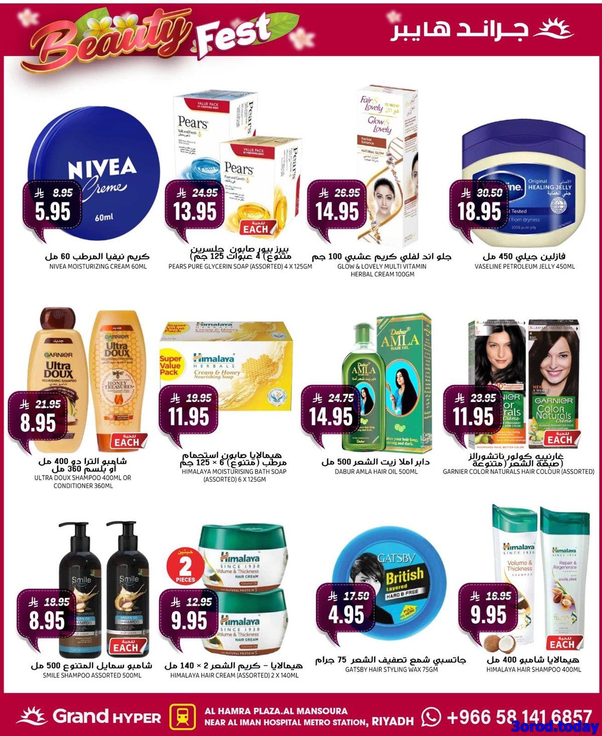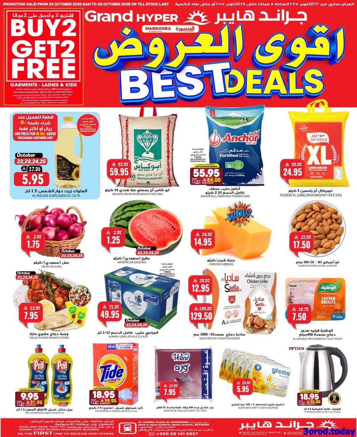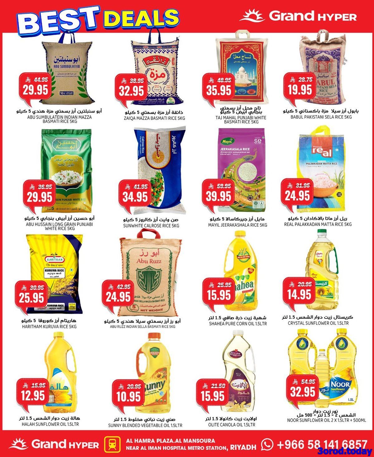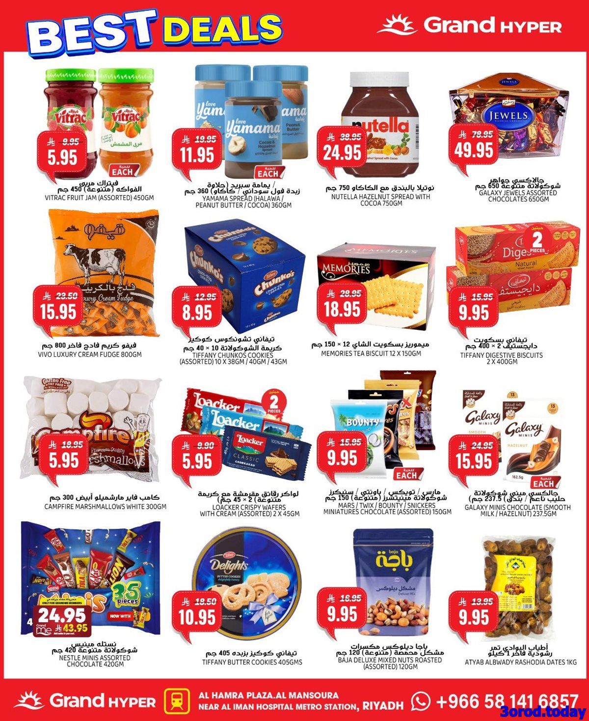 عروض جراند هايبر الرياض الأسبوعية الأربعاء 30 ربيع الآخر 1447هـ تحتوي على خصومات كبيرة على الأجهزة المنزلية مثل أفران البيتزا وأجهزة القهوة وأجهزة الشوي الكهربائية وغيرها من الاجهزة الضرورية للمطبخ بالإضافة إلى منتجات غذائية تشمل العصائر المعلبة والمخبوزات والمعلبات والمشروبات الباردة والشوكولاتة