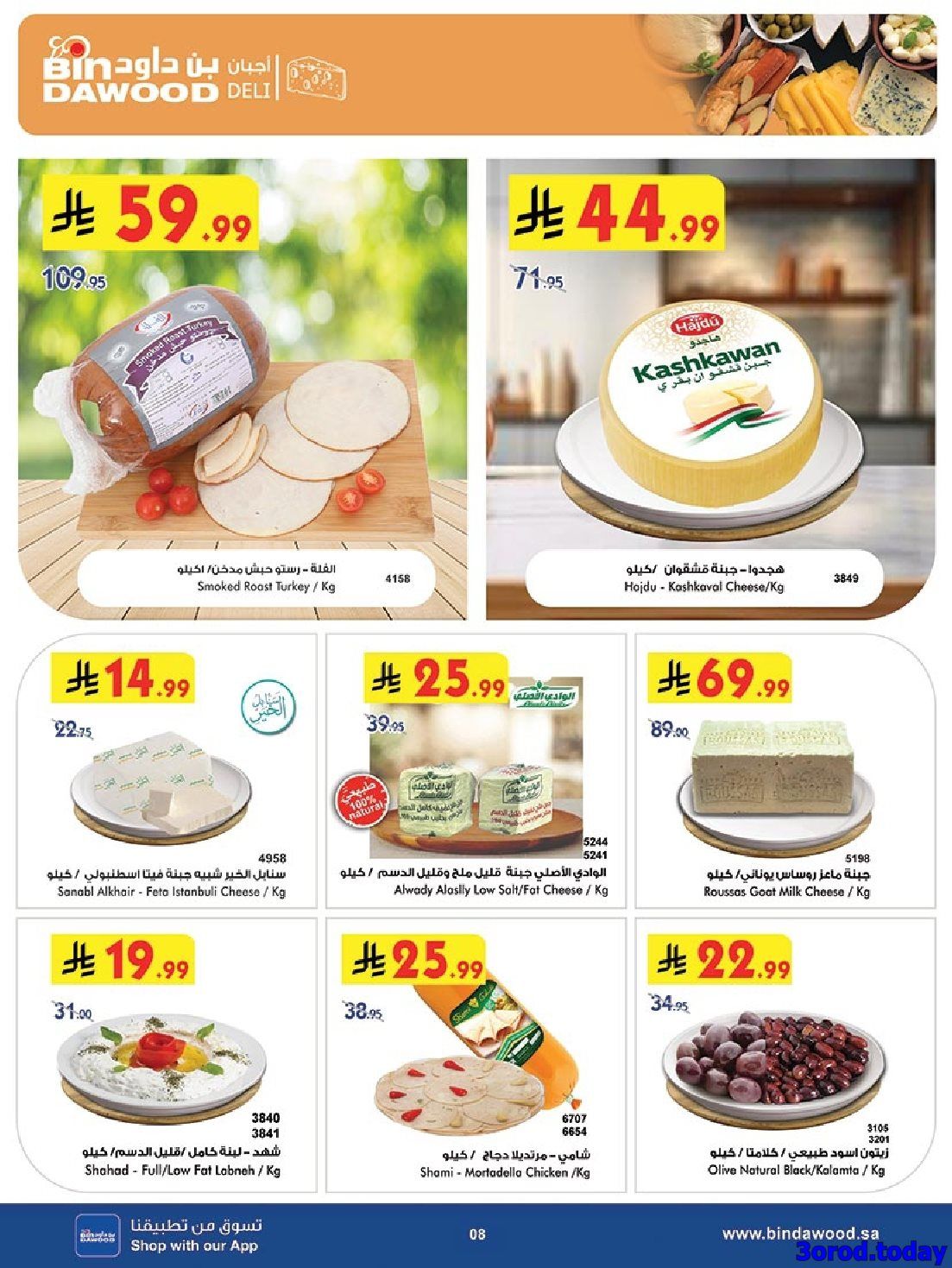 عروض بن داود جدة الأسبوعية الخميس 23 أكتوبر 2025 الموافق 1 جمادى الأولى 1447هـ تحتوي على خصومات على الأجهزة المنزلية مثل أفران البيتزا وأجهزة القهوة وأجهزة تحضير العصائر والمكانس الكهربائية وأدوات المائدة ثم تمتد إلى المنتجات الغذائية من المخبوزات والعصائر الطبيعية والعسل والمربى والفواكه الطازجة