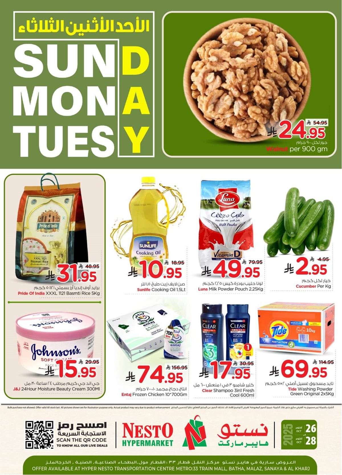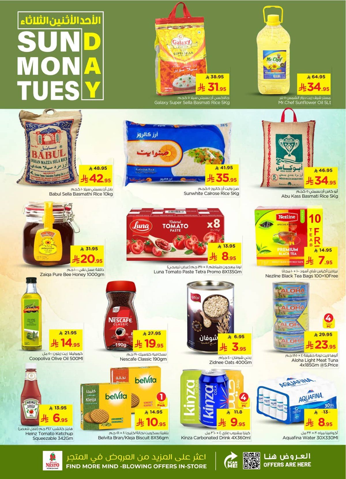 نقدم لكم احدث عروض نستو الرياض الأحد 26 اكتوبر 2025 و بتوفر تشكيلة من المنتجات الغذائية من الأرز و الزيوت النباتية والعسل الطبيعي كما تشمل معجون الطماطم وأكياس الشاي بالإضافة إلى منتجات الشوفان والقهوة السريعة والكوكيز والمشروبات الغازية والمياه المعبأة و اللحوم و الخضروات باقل الاسعار