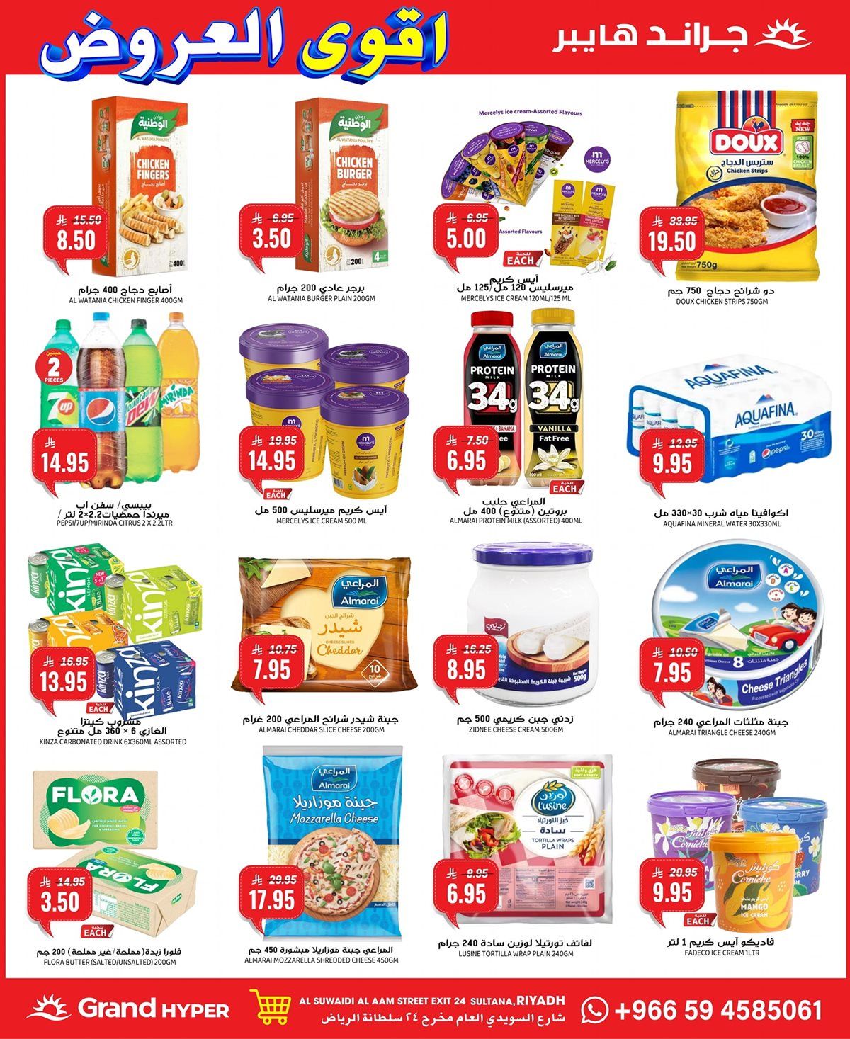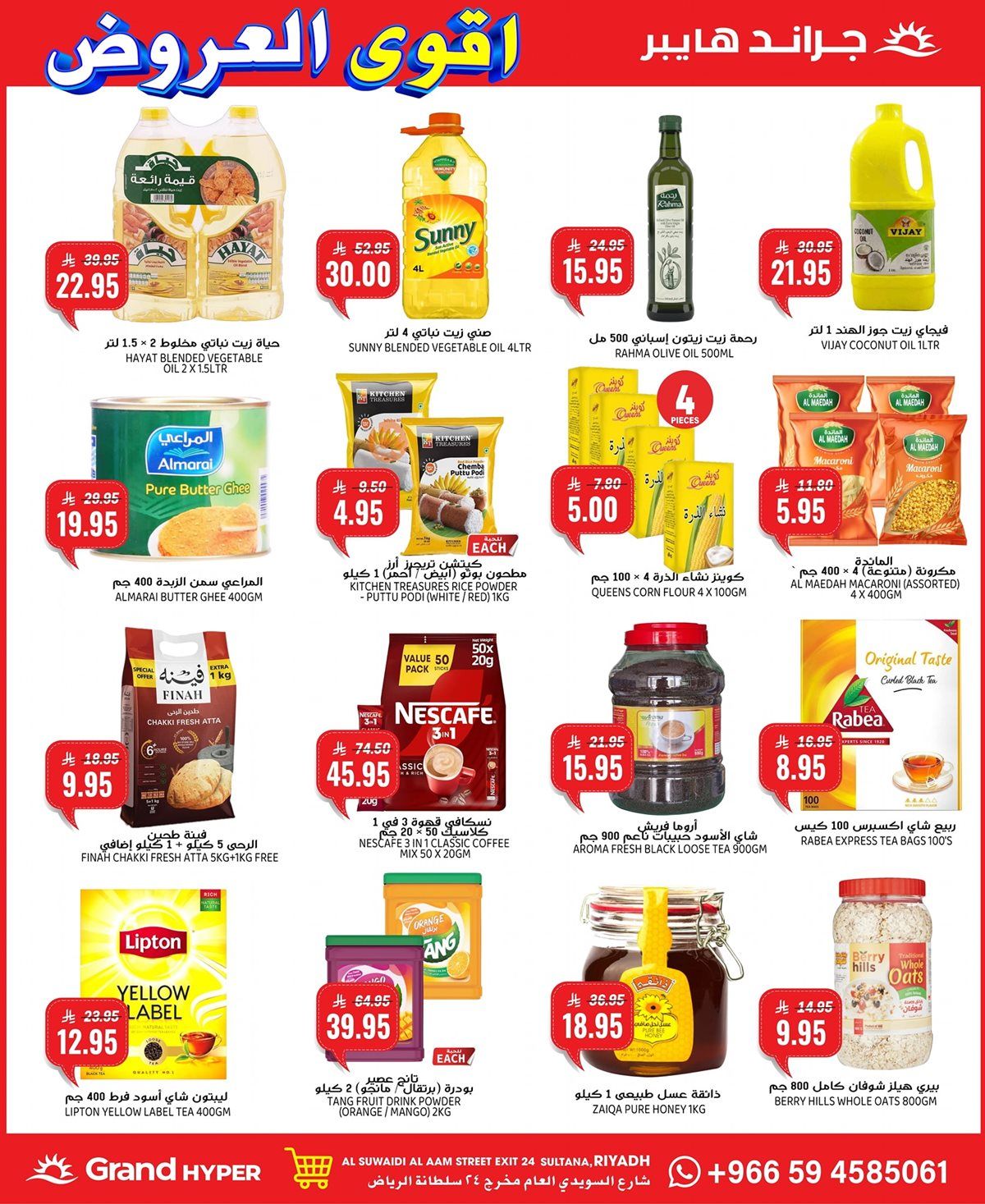 عروض جراند هايبر الرياض الأحد 26 أكتوبر 2025 توفر تشكيلة من الفواكه الطازجة مثل التفاح الملكي والرمان اليمني والعنب الأحمر الخالي من البذور والخضروات المتنوعة مثل الخيار السعودي والثوم الطازج والبطاطا بالإضافة إلى اللحوم بأنواعها حيث توفر لحوم الجمل الطازج والعجل البقري المحلي ولحم الضأن الإثيوبي وغيرها باقل الاسعار