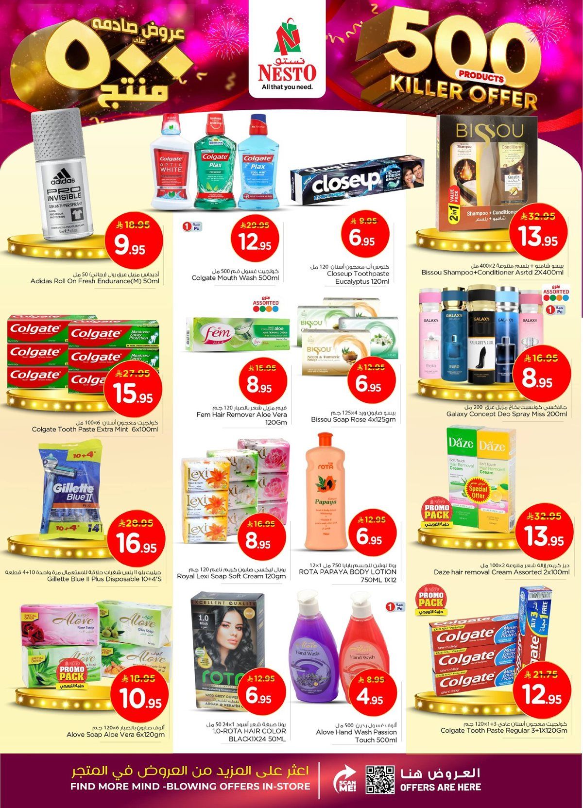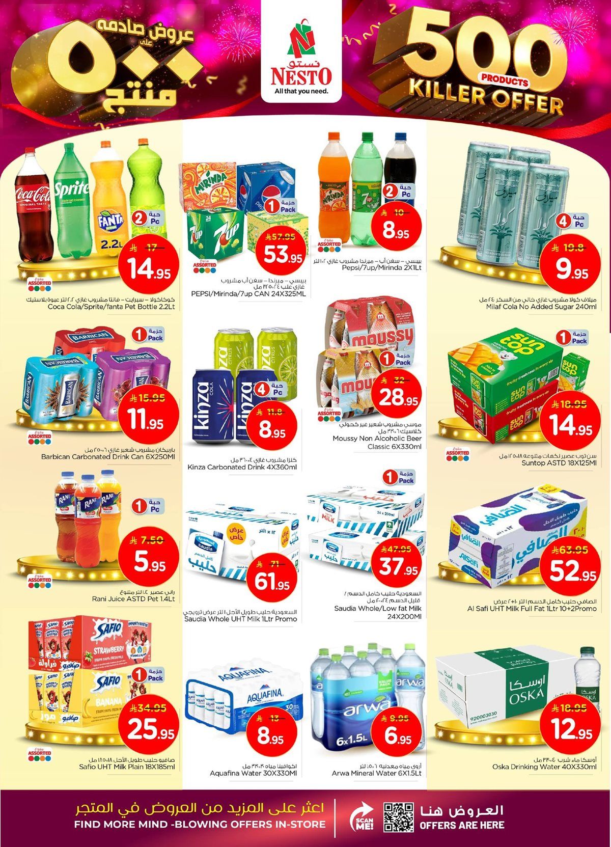 عروض نستو القصيم الأسبوعية الأربعاء 7 جمادى الأولى 1447هـ تحتوي على الأغذية الطازجة مثل الخضروات واللحوم المحلية والمنتجات البحرية والفواكه المجففة والعصائر الطبيعية والمخبوزات كما تتضمن خصومات على الأجهزة المنزلية مثل أجهزة الخبز الأوتوماتيكية وأفران التحميص ومضارب البيض الكهربائية وأجهزة صنع القهوة