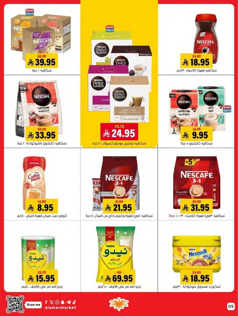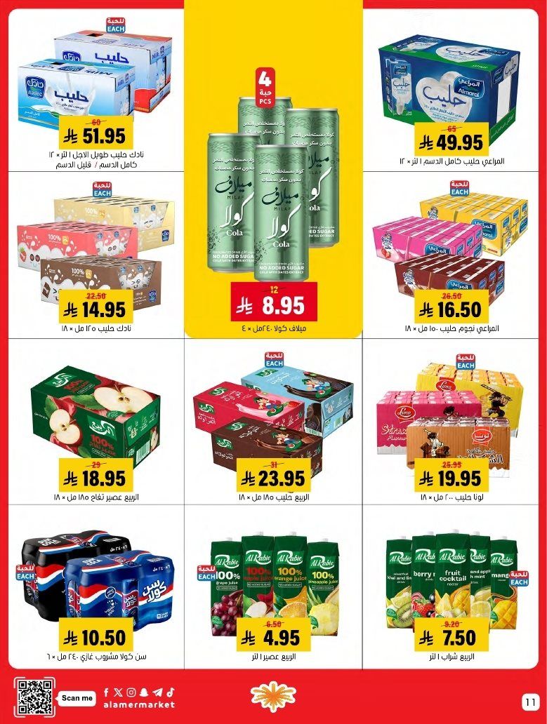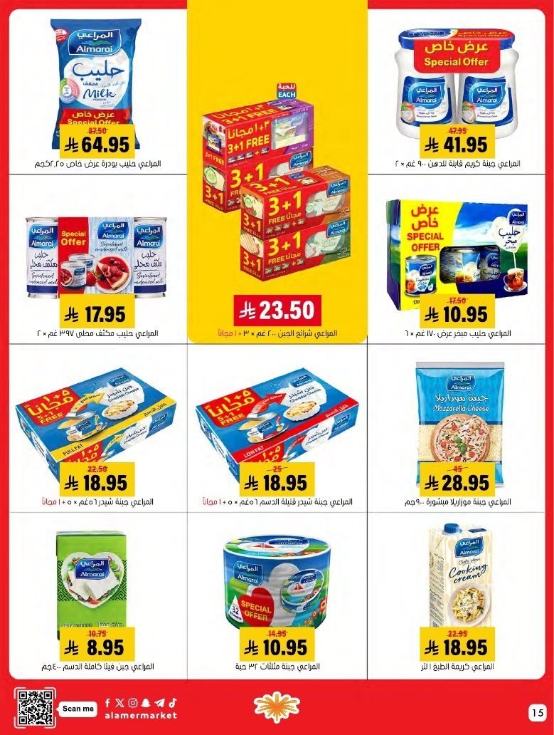 عروض أسواق العامر السعودية السبت 1-11-2025 و تحتوي علي المنتجات الغذائية والاستهلاكية منها الشاي والبسكويت والزيوت النباتية بالإضافة إلى الأجبان المميزة والخضروات وحفاضات الأطفال كما تتوفر المواد المنزلية مثل المناديل الورقية والمنظفات وأطقم العصائر بتوفر الأجبان و الخبز والمعجنات باقل الاسعار
