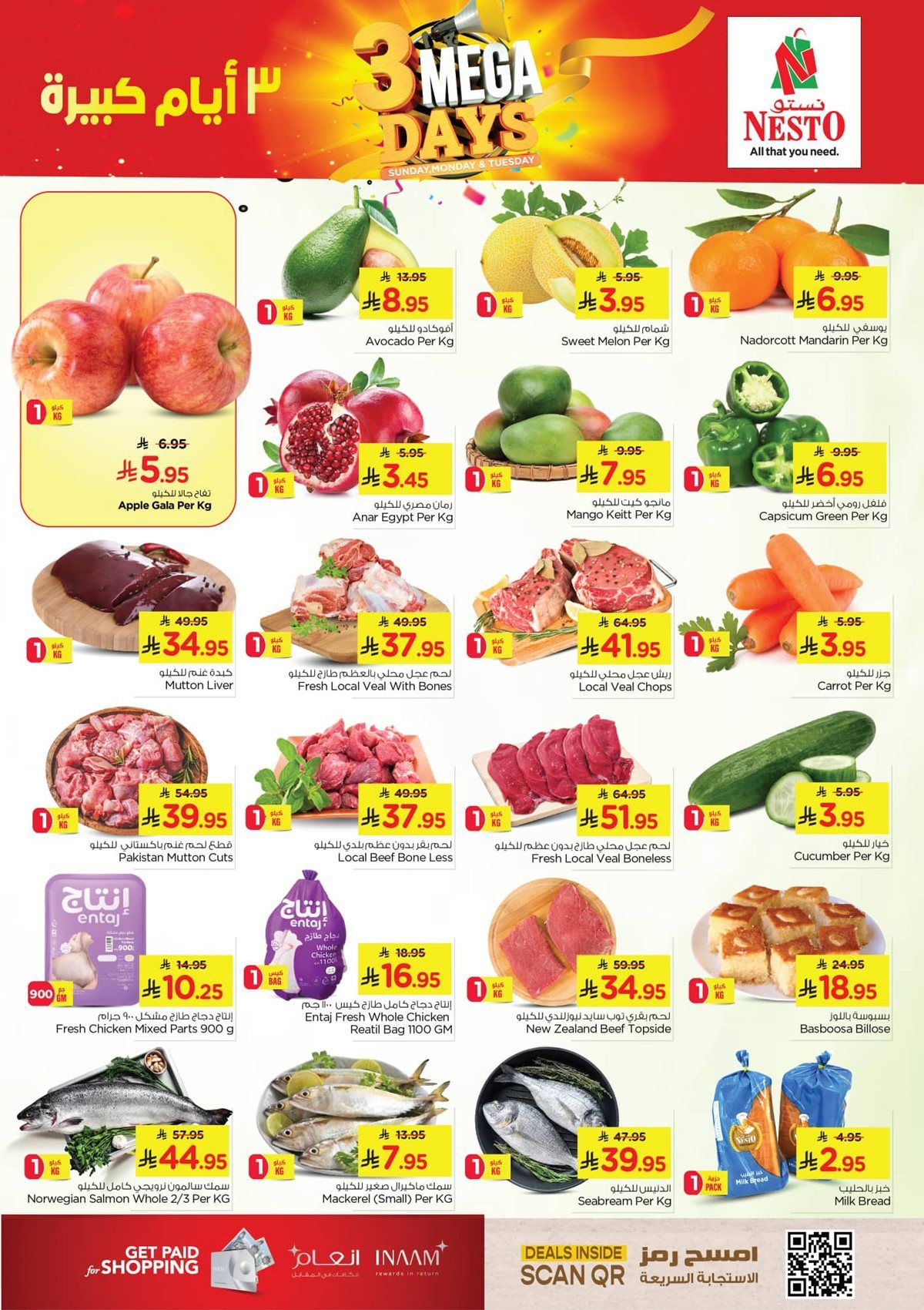 عروض نستو الاحساء الاحد 2-11-2025 تقدم تشكيلة من الفواكه والخضروات الطازجة مثل التفاح والرمان والمانجو والأفوكادو الشمام والجزر والخيار إلى جانب اللحوم الطازجة والكبدة والمأكولات البحرية وأنواع الدجاج الطازج والمجمد والأجبان المميزة بالإضافة إلى الخبز اليومي والحلويات باقل الاسعار التي تناسب الجميع