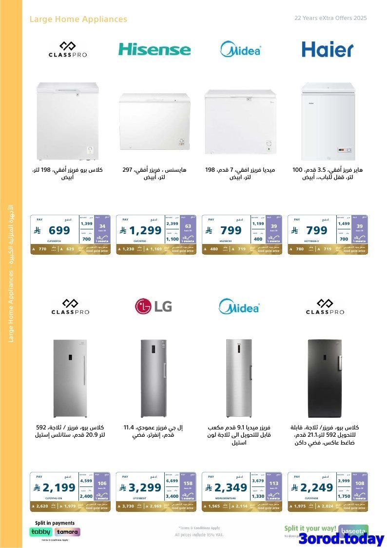 نقدم لكم عروض اكسترا السعودية و مستمرة حتي السبت 15-11-2025 و بتقدم مجموعة من الأجهزة المنزلية الكبيرة من أشهر الماركات مثل سامسونج وإل جي وبوش وتوشيبا وهاير وباناسونيك و تتضمن تشكيلة كبيرة من الفريزرات إلى جانب أحدث الغسالات ومجففات مع مجموعة مميزة من غسالات الصحون وغيرها باقل الاسعار المناسبة للجميع