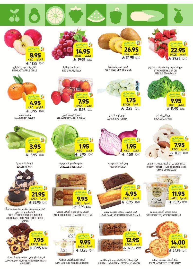 عروض التميمي الدمام الأسبوعية الأربعاء 21 جمادى الأولى 1447هـ تحتوي على خصومات على الأجهزة المنزلية مثل أفران التحميص الكبيرة وأجهزة الطبخ الذكية ومكائن إعداد المعجنات وأجهزة العجن الكهربائية كما تشمل الحبوب الكاملة والفواكه المجففة والزيوت الطبيعية والمكسرات والفواكه والخضروات الطازجة باقل الاسعار