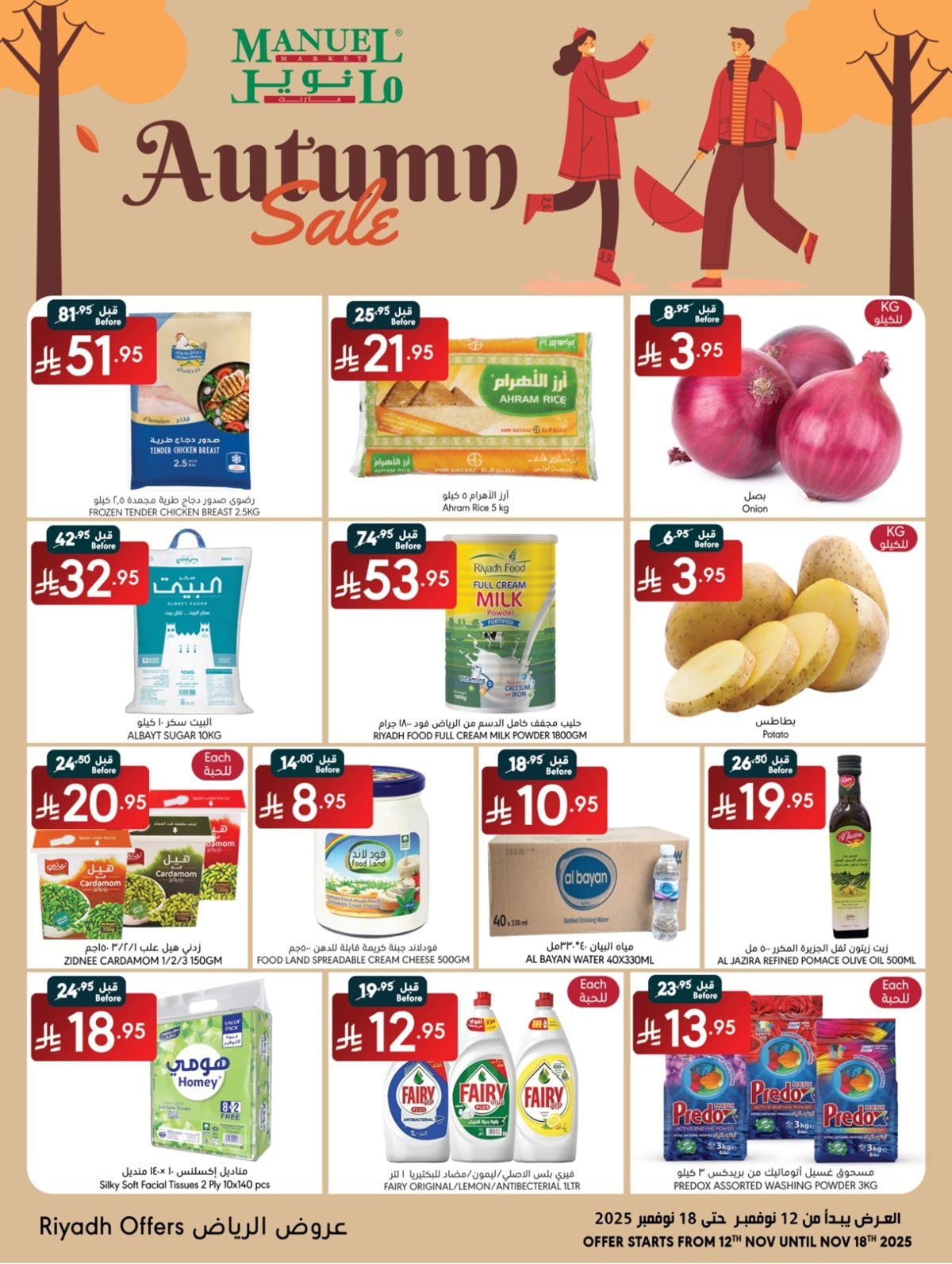 عروض مانويل الرياض الأسبوعية الأربعاء 12 نوفمبر 2025 تبدأ بخصومات ضخمة على الأجهزة المنزلية مثل أفران الطهي بالبخار وأجهزة الطبخ الذكية ومراوح التهوية والمكانس الكهربائية اللاسلكية وأجهزة التنظيف بالبخار ثم تمتد لتشمل المنتجات الغذائية منها اللحوم الطازجة والأسماك والفواكه والعسل والزيوت والأرز والجبن