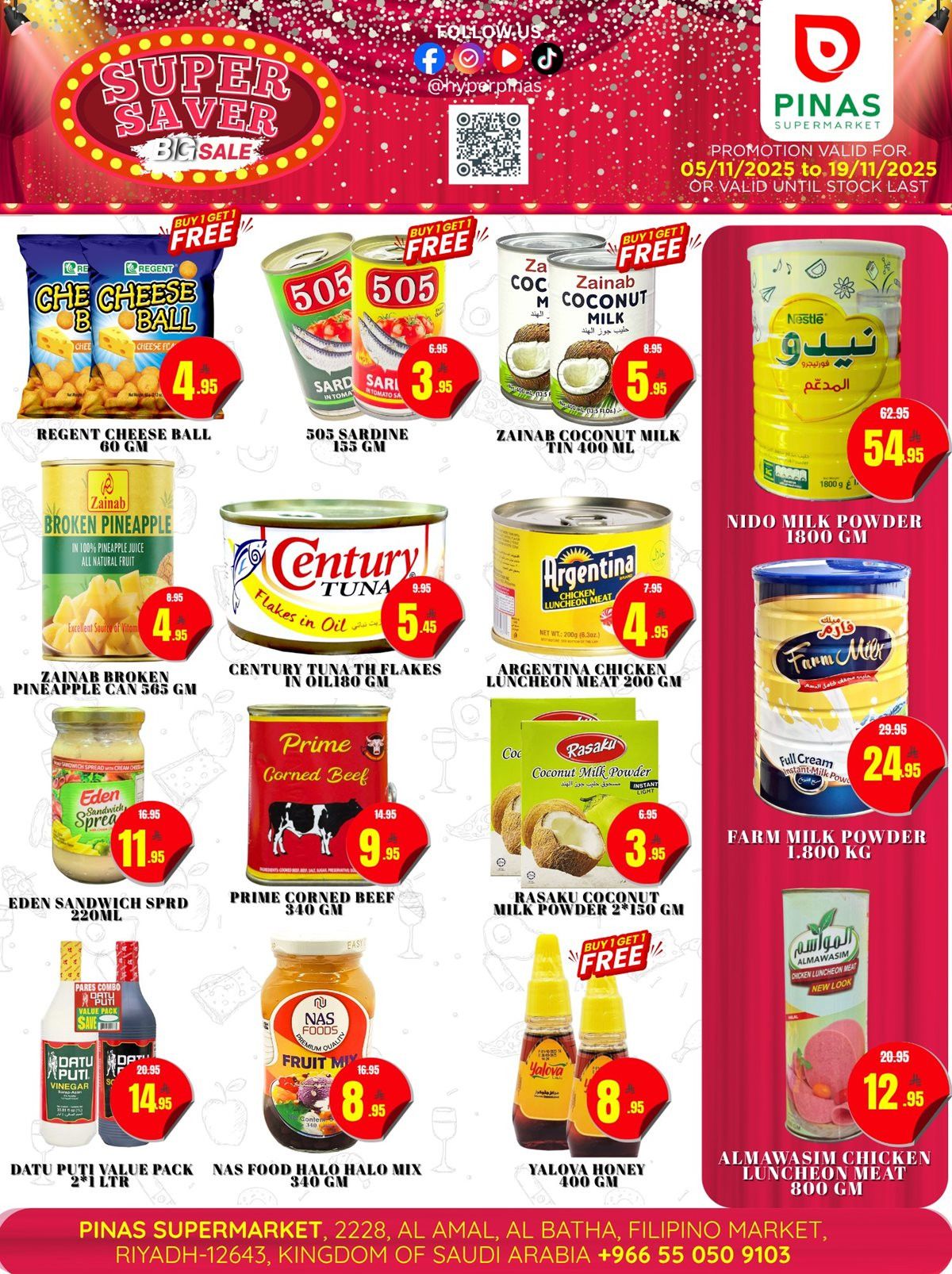 عروض بيناس هايبر ماركت الرياض الخميس 13/11/2025 تحتوي تخفيضات ضخمة على الأجهزة المنزلية مثل أفران الطبخ وأجهزة العجن واجهزة إعداد الحلويات وأجهزة الطبخ الهوائية كما تقدم منتجات غذائية مثل الأرز والحبوب والفواكه والعسل الطبيعي والزيوت والمكسرات والبهارات ومنتجات الإفطار وباقل الاسعار المناسبة للكل .