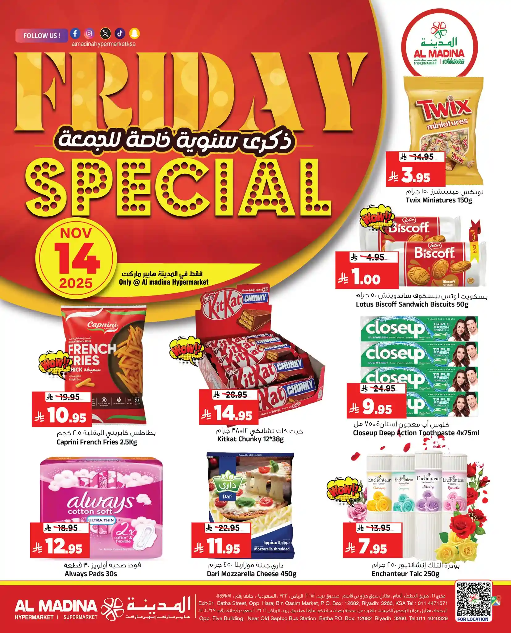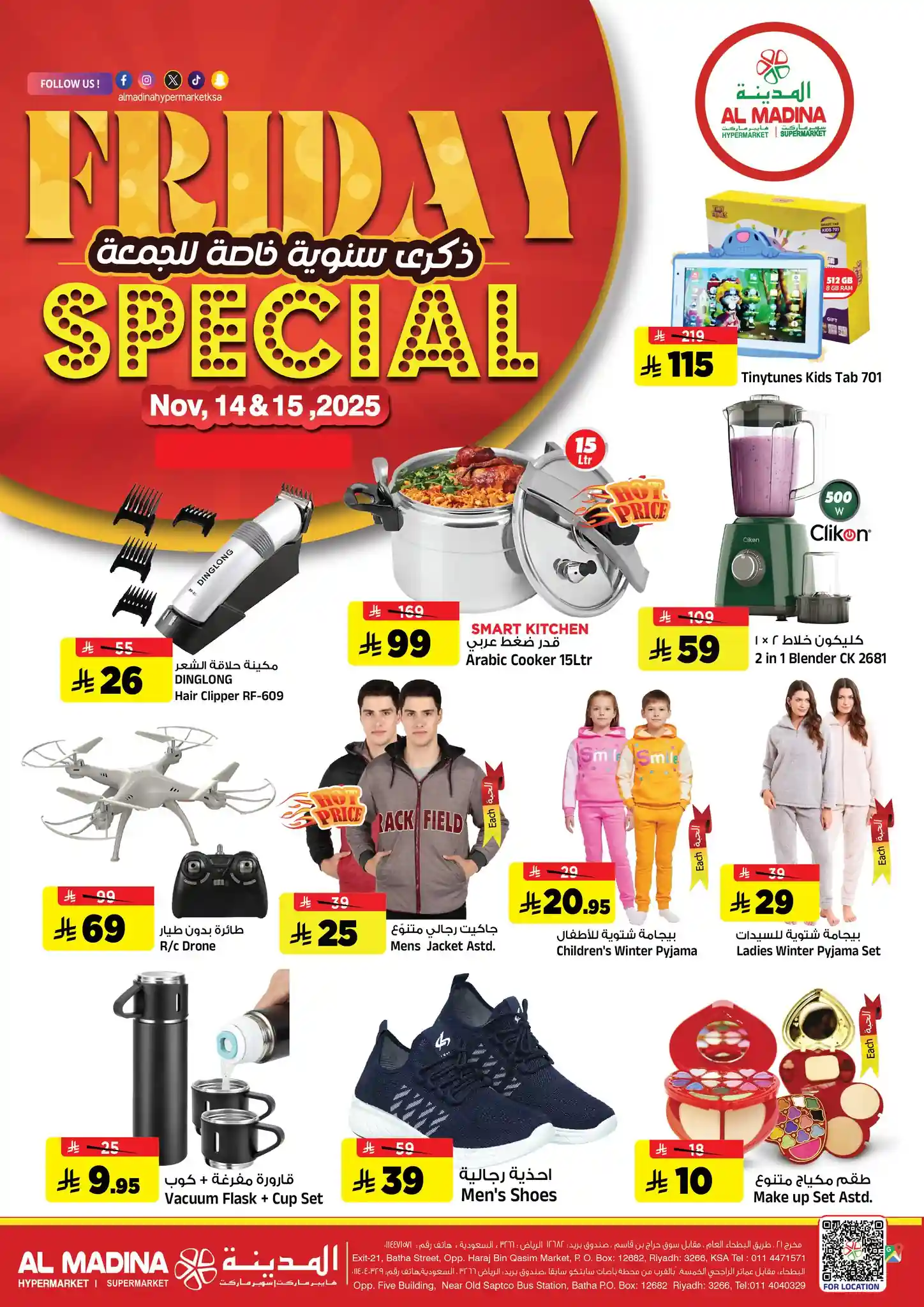 عروض نت تقدم لكم احدث عروض المدينة هايبر ماركت  الرياض اليوم الجديدة فى صفحة واحدة – العروض الاسبوعية من المدينة هايبر ماركت – و ذلك من 14 و 15 نوفمبر 2025 و حتى نفاذ الكمية من المدينة هايبر ماركت بجميع الفروع.
