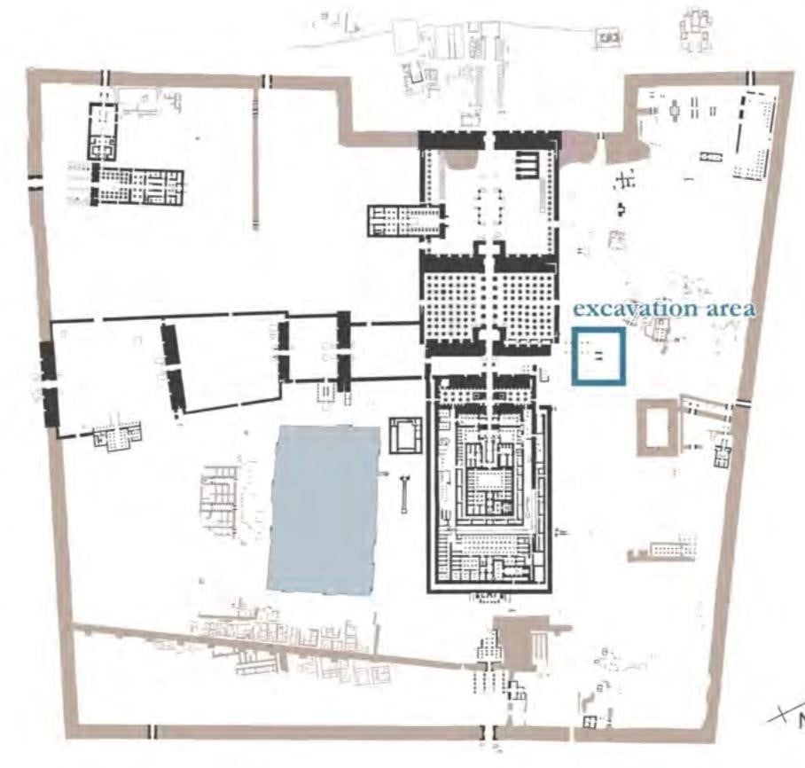 مخطط لمعابد الكرنك والمربع الأزرق يشير لمكان البوابة