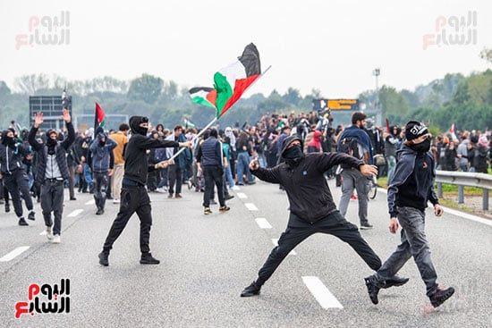 وأبرزت الوكالة مشاهد لاعتصام النشطاء والمشاركين في المظاهرات والإضراب، حيث قاموا بقطع خطوط السكك الحديدية وتعطيل حركة السير في معظم أنحاء إيطاليا، كما اندلعت اشتباكات بين المتظاهرين وقوات الشرطة المكلّفة بفض الإضراب.