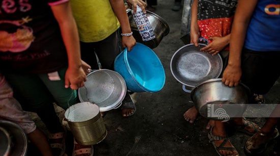 الجوع يلاحق النازحين في غزة.. الحشود ترفع الأوانى الفارغة بحثا عن لقمة