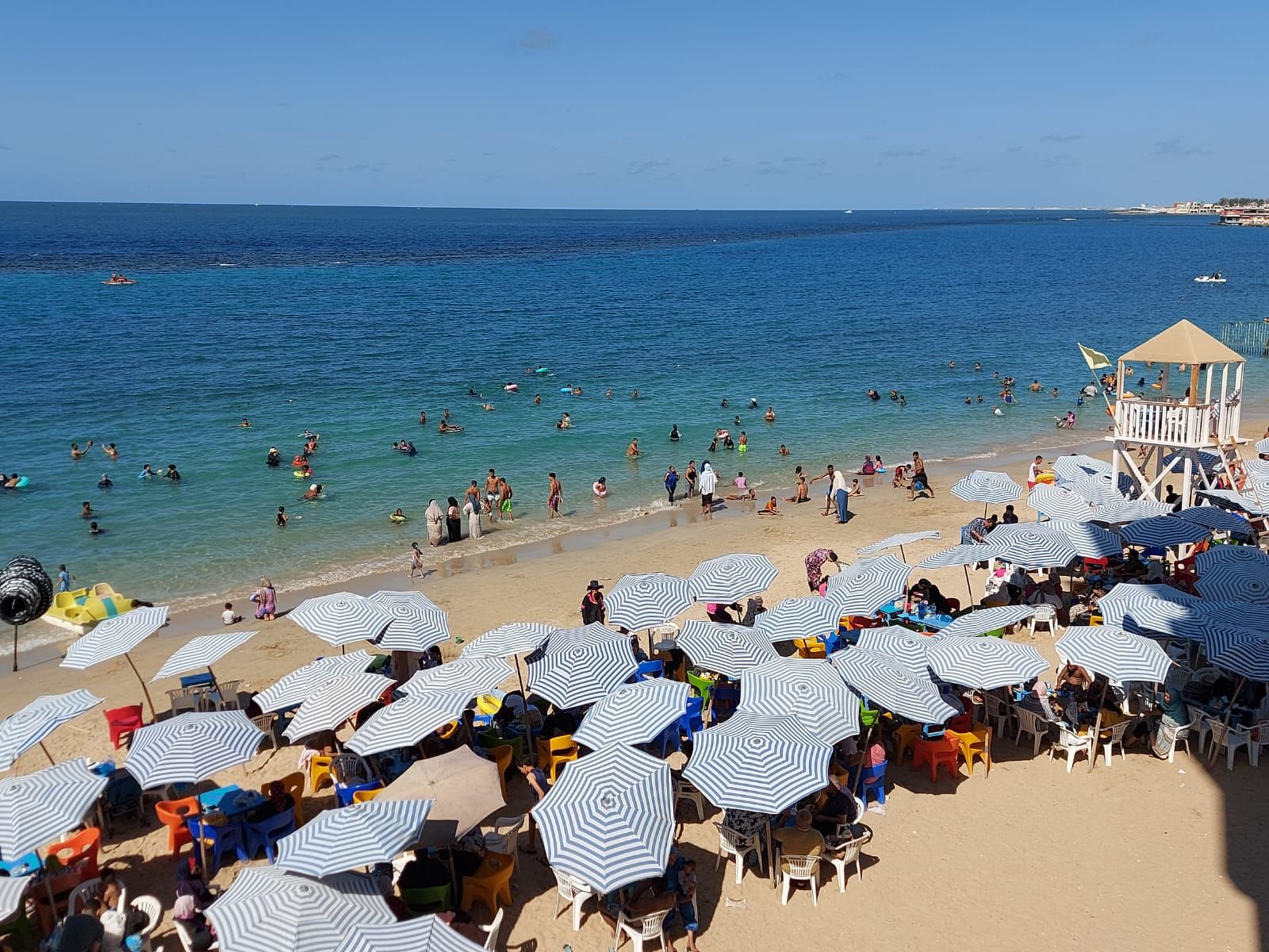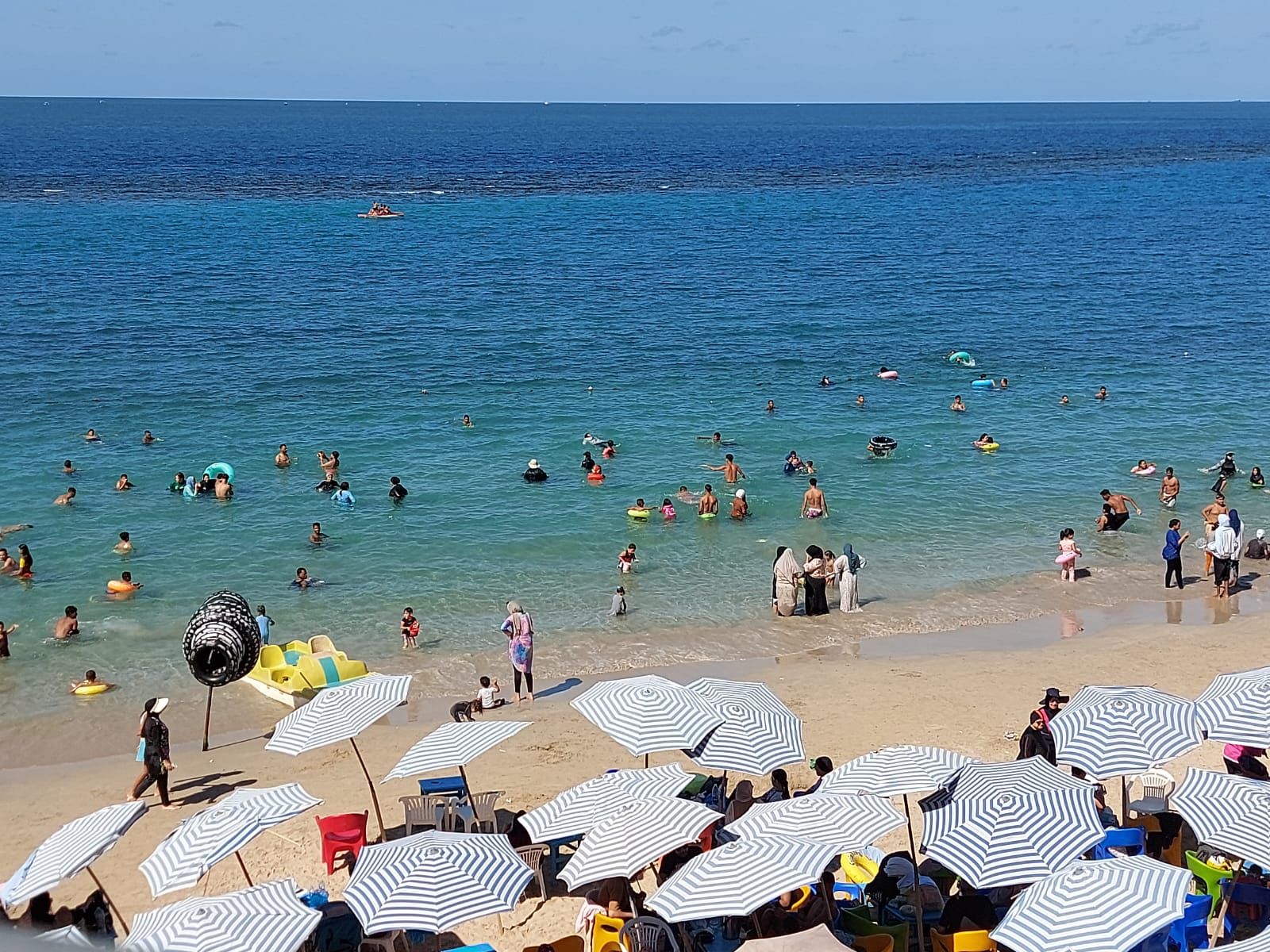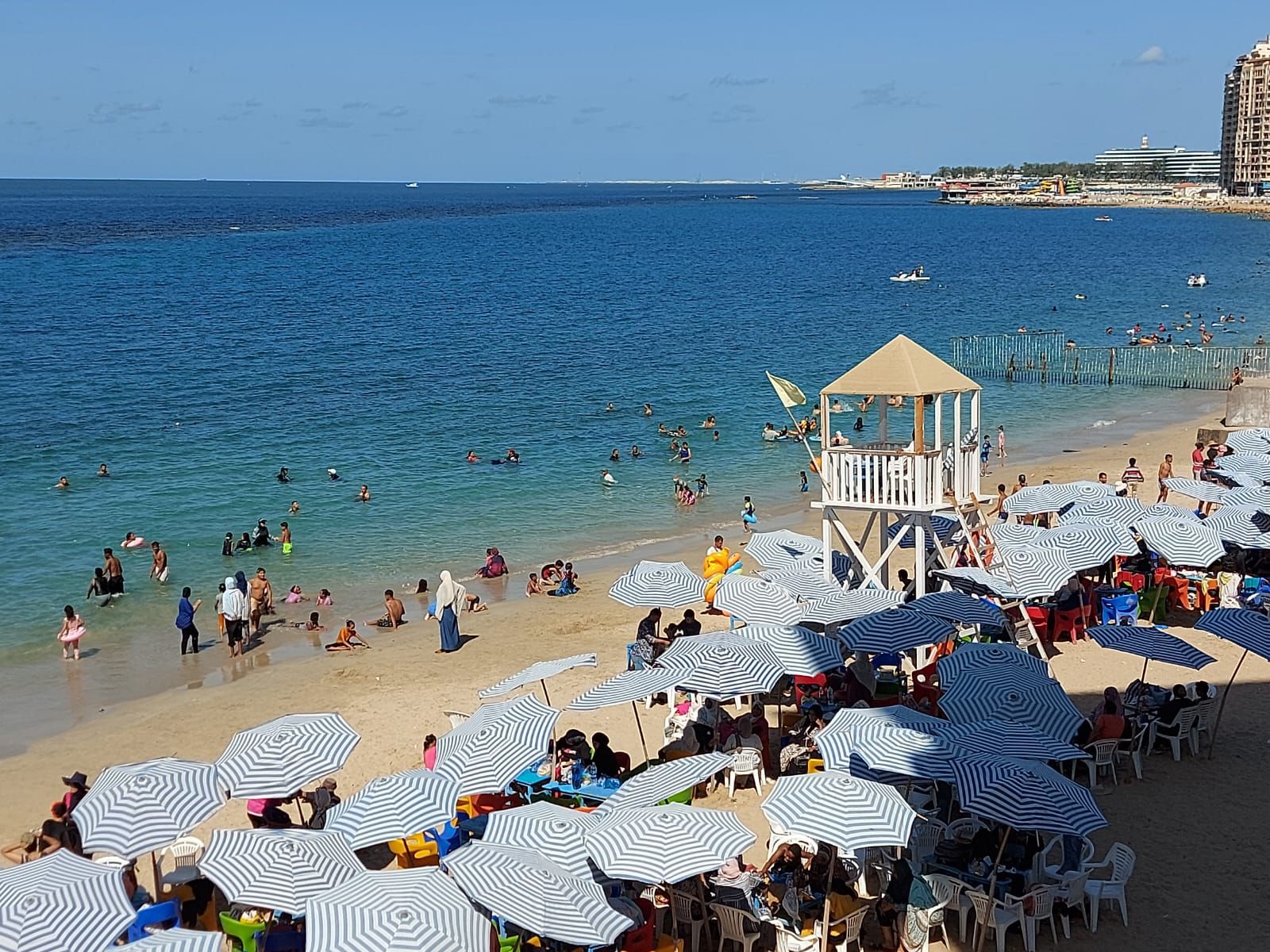 و جاءت الأجواء على الشواطئ أجواء ممتعه من الاستمتاع بالبحر و روب الألعاب المائية والبدلات ، مع انتظام خروج رحلات النزهه البحرية بالقوارب الصغيرة واليخوت ، وكذلك الألعاب الشاطئية مثل ممارسة لعبة "الراكيت" على رمال الشاطئ .