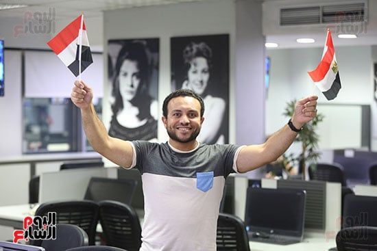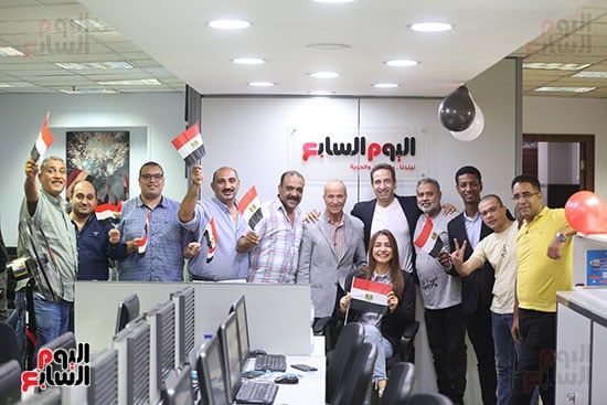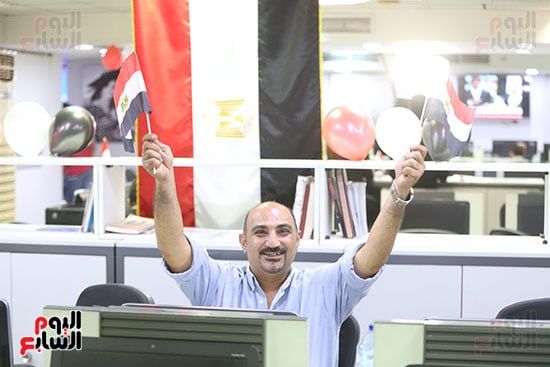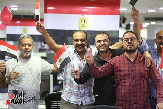 وارتفعت الأعلام المصرية فى صالة التحرير، وتبادل الزملاء العناق والتهاني، وارتفعت أصوات الزغاريد والأغانى الوطنية، والجميع توحدوا تحت شعار واحد "مصر في كأس العالم!".