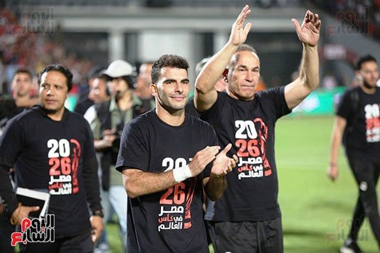 ارتدى لاعبو المنتخب الوطنى والجهاز الفني تيشرت الصعود لكأس العالم 2026 بعد انتهاء مباراة الفراعنة أمام غينيا بيساو التي انتهت لصالح المنتخب بهدف دون مقابل في الجولة الأخيرة من التصفيات الأفريقية المؤهلة لكأس العالم.