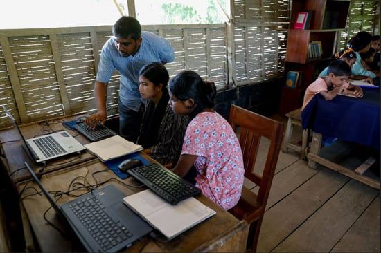 تنتظم الفصول الدراسية على ثلاث نوبات يوميًا، مدة كل منها حوالي ثلاث ساعات. يجوب المعلمون مجاري مائية ضيقة لجمع الطلاب، ويُقدمون دروسًا في اللغة البنغالية والرياضيات والمعارف العامة.