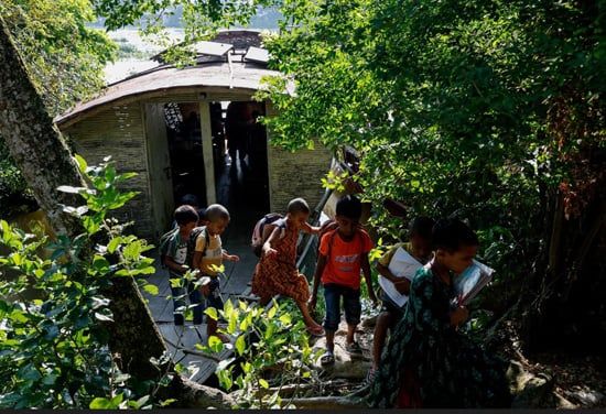 المدارس فوق مياه فيضان بنجلاديش (3)