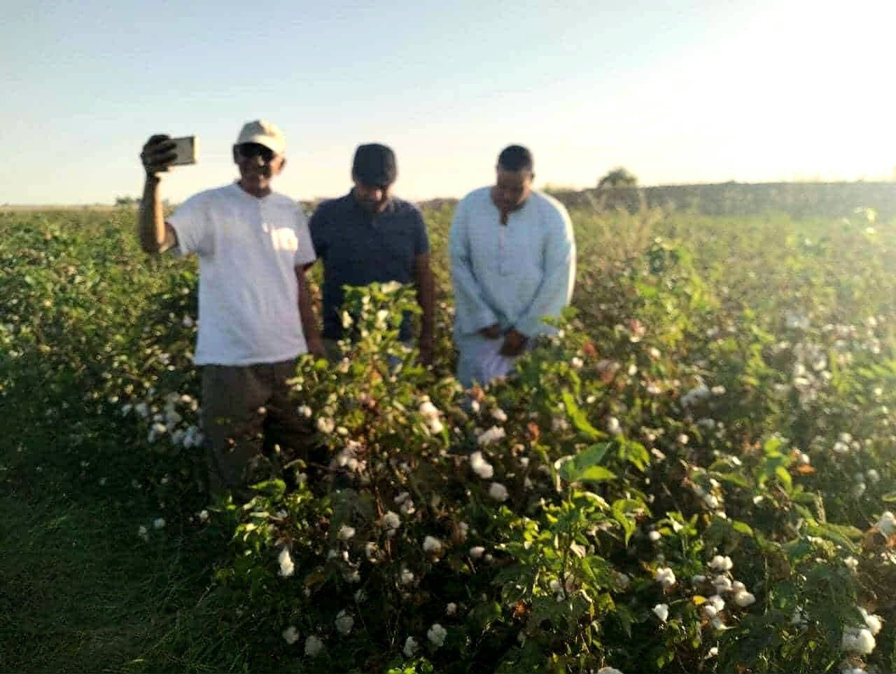 فريق عمل القطاع الزراعي اثناء متابعة جنى القطن
