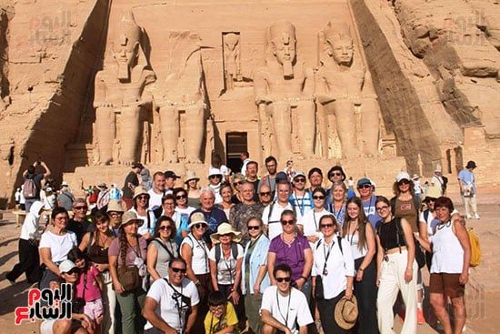 الثلاثاء، 21 أكتوبر 2025 12:37 مشهد معبد أبو سمبل السياحي بمحافظة أسوان اليوم انتعاشة ملحوظة في الحركة السياحية، وذلك قبل يوم واحد فقط من الظاهرة الفلكية الفريدة لتعامد الشمس على وجه الملك رمسيس الثاني، والتي ينتظرها الزوار من مختلف دول العالم.