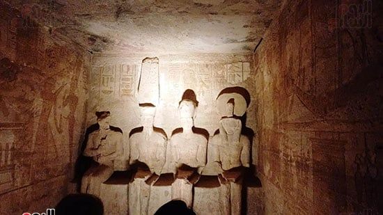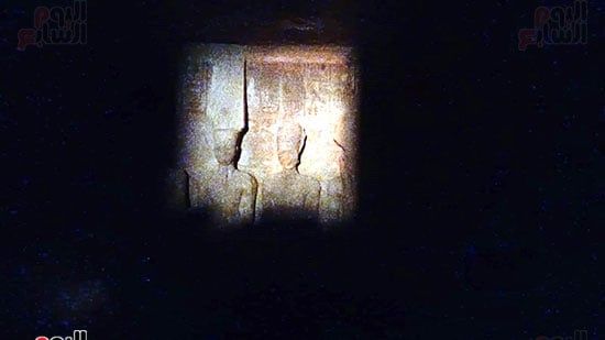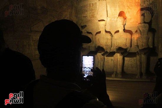 وبدأت أشعة الشمس تتسلل إلى داخل معبد أبوسمبل وصولا إلى منصة قدس أقداس رمسيس، لتعلن عن ظاهرة "تعامد الشمس"، التى استمرت فقط لمدة 20 دقيقة.