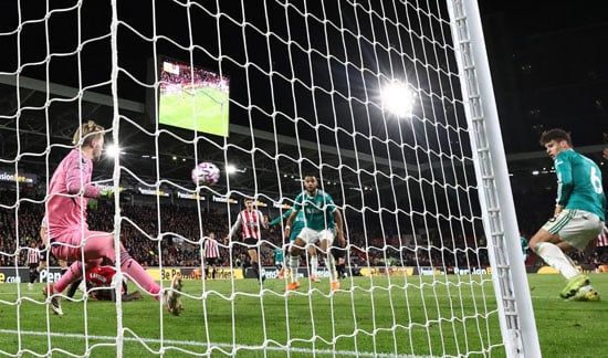 لحظة تشجيل لاعبى برينتفورد الهدف