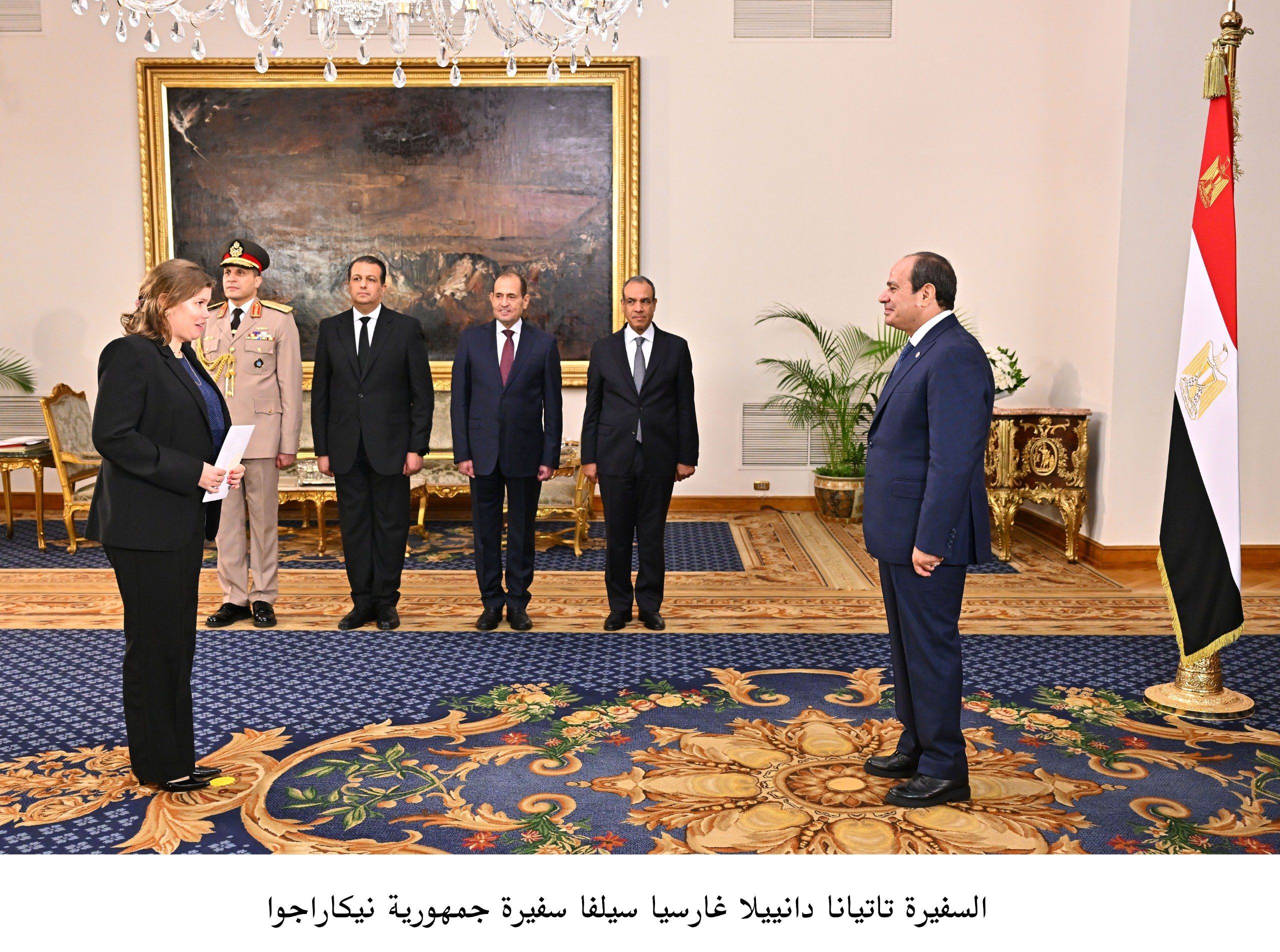 وصرّح السفير محمد الشناوى، المتحدث الرسمي باسم رئاسة الجمهورية بأن الرئيس السيسى أعرب عن ترحيبه بالسفراء الجدد المعتمدين لدى جمهورية مصر العربية، مؤكدًا اعتزاز مصر بعلاقاتها المتميزة مع دولهم، وحرصها الراسخ على تعزيز أواصر التعاون الثنائي في شتى المجالات. كما أعرب الرئيس السيسى عن خالص تمنياته لهم بالتوفيق والنجاح في أداء مهامهم الدبلوماسية بالقاهرة، مؤكداً التزام الدولة المصرية بتقديم كافة سبل الدعم والمساندة اللازمة، بما يسهم في تعميق أواصر التقارب والتعاون والتنسيق المنشود بين الجانبين.